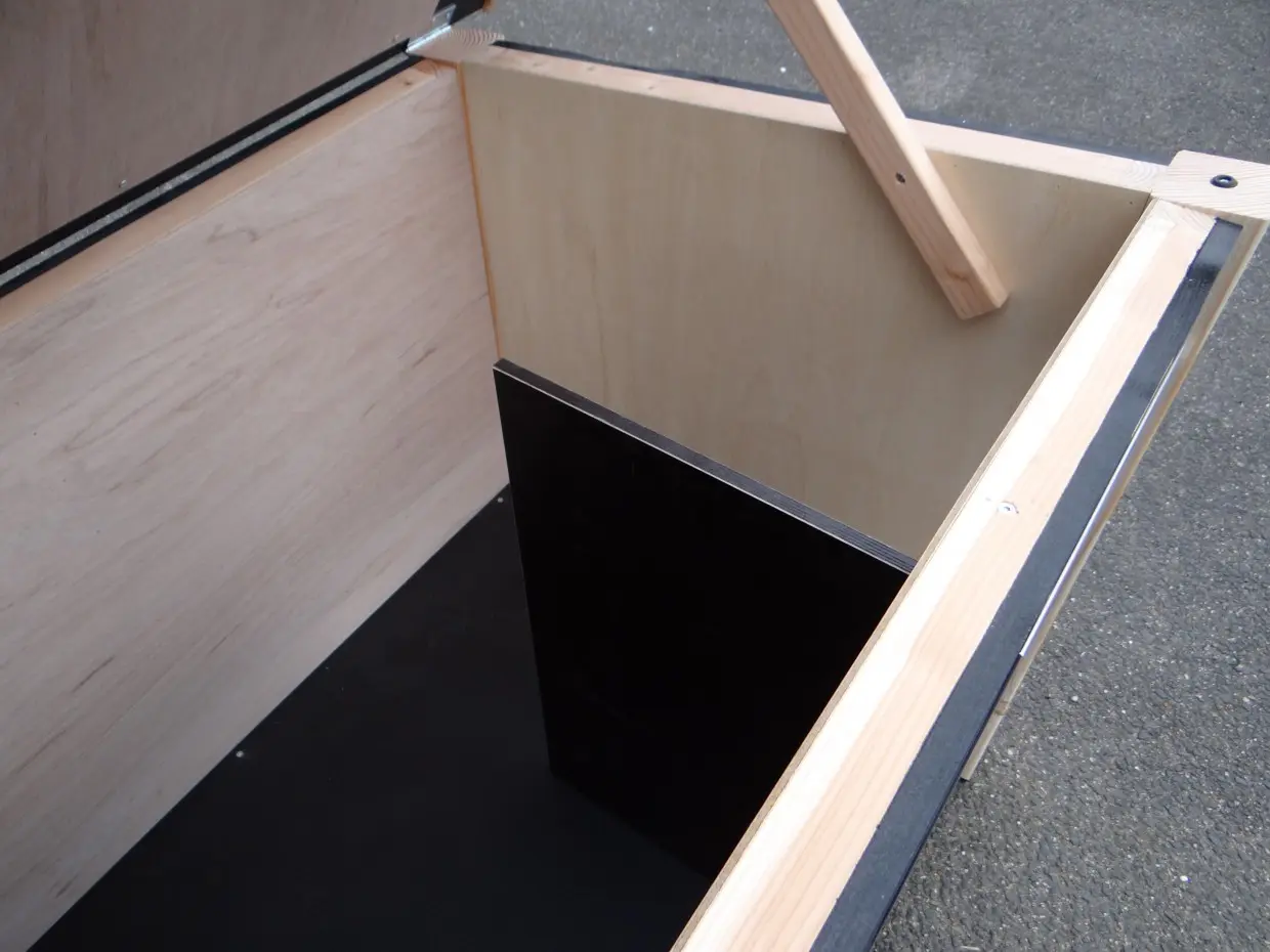- De binnenkant is betimmerd met hardhout multiplex