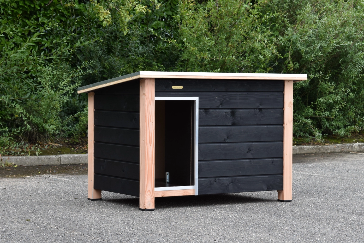 Hondenhok Wolf zwart/douglas is een mooi buitenverblijf voor de hond. Omdat het hok geïsoleerd hok is, kan uw hond er zowel zomer als winter in verblijven. Dit mooie, houten hondenhok wordt door onze eigen timmermannen gemaakt. Het is dan ook een hok van top kwaliteit. Het behoeft geen verder onderhoud. Geïsoleerd hondenhok Wolf is geschikt voor bijvoorbeeld ✓Rottweiler ✓Labrador ✓Duitse herder.