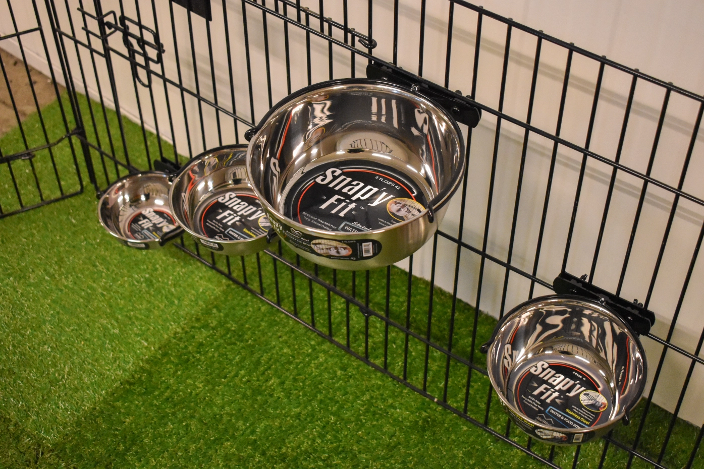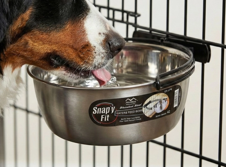 Snap'y Fit RVS voer- en drinkbak is uniek in zijn soort. Door het speciale ophangsysteem blijft de bak altijd goed op zijn plaats, terwijl deze toch gemakkelijk te verwijderen is. Voor de hond is het niet mogelijk om deze uit de houder te wippen en uit te kiepen. De Snap'y Fit is mooi afgewerkt en met stevig schroefdraad eenvoudig te monteren aan de bench.