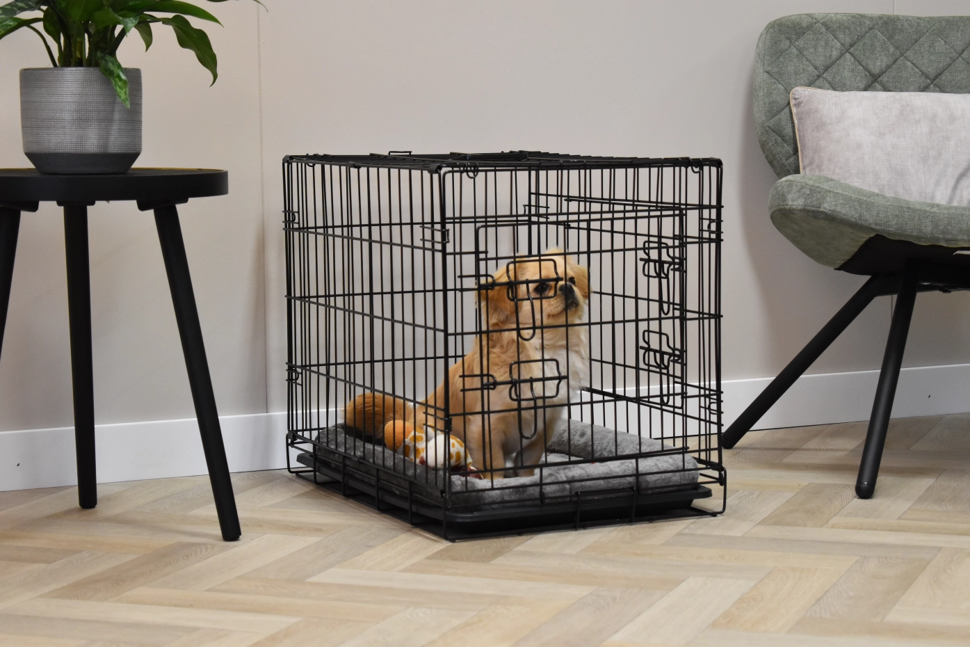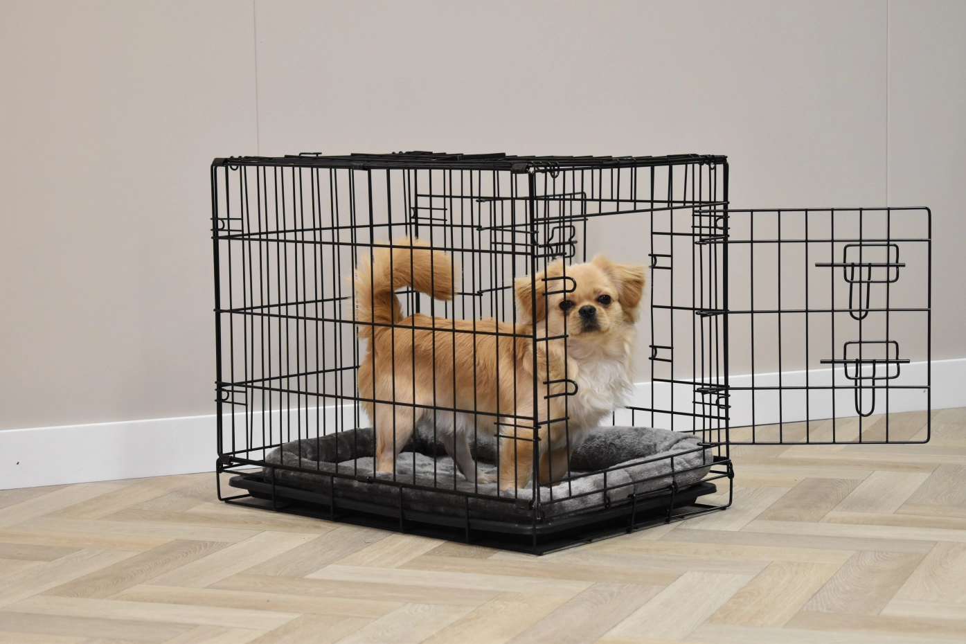 - Degelijke hondenbench met zwart gepoedercoate tralies