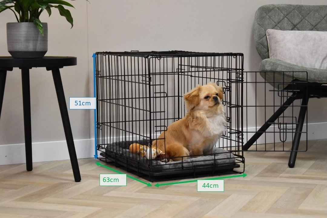Hondenbench Profit is 63x44x51cm (LxBxH). De hondenbench heeft 2 stevige deuren met sluiting. De opvouwbare hondenbench heeft een uitneembare kunststof bak. Hierdoor is onze hondenbench gemakkelijk schoon te maken. Geschikt als bench voor een kleinere hond als Boomer, Cavalier King Charles Spaniel, Dwergkeeshond, Jack Russel, Maltezer, Pekinees, Teckel, West Highland White Terriër en Yorkshire Terriër. Deze zwarte hondenbench Profit is leverbaar in 3 verschillende afmetingen: [63cm] / 92cm / 122cm.