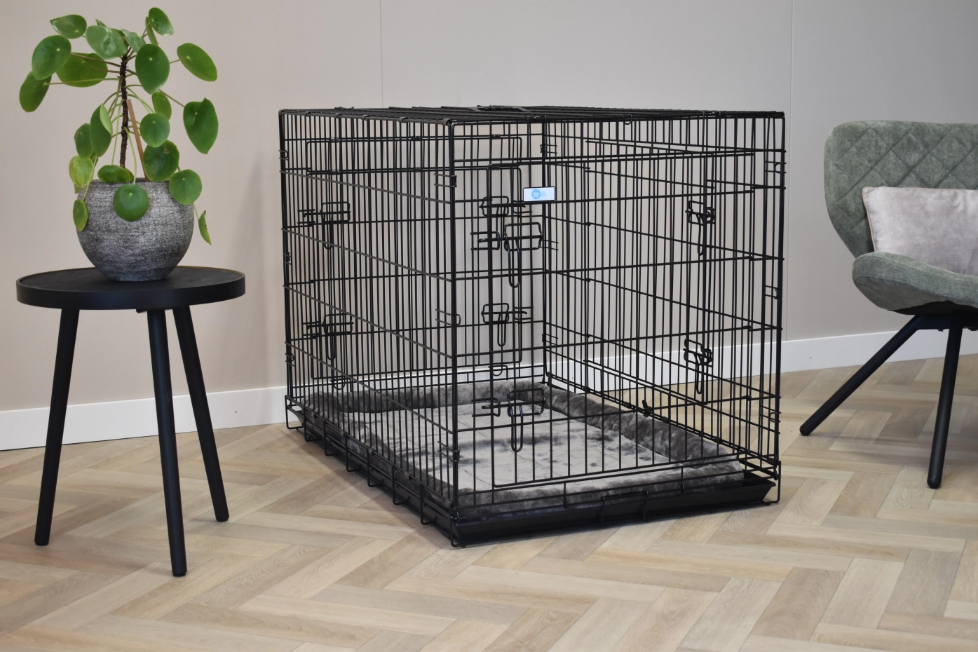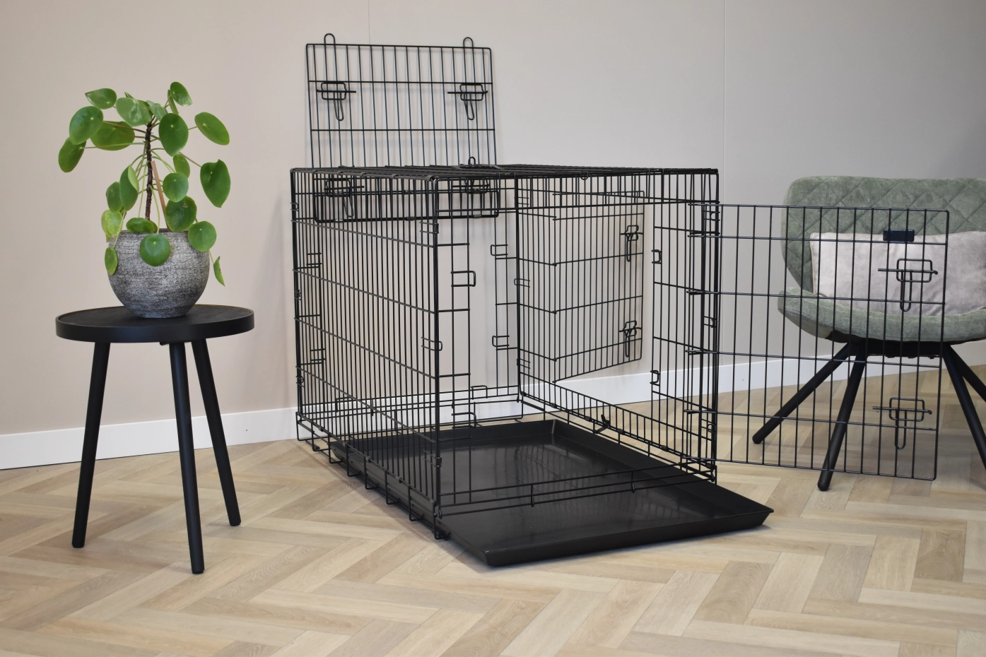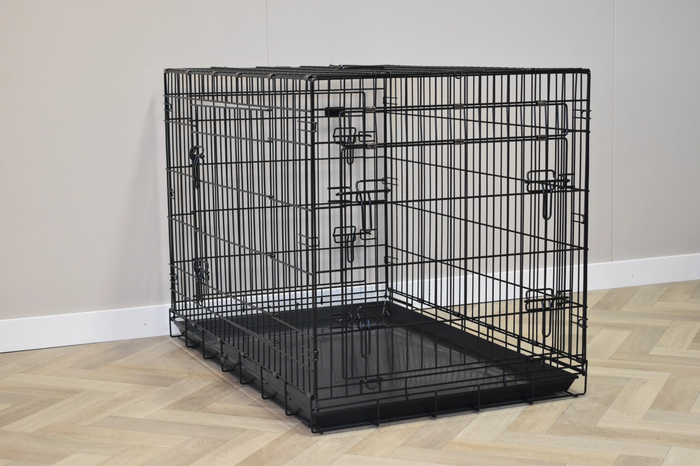 - Zeer degelijke hondenbench met dikke, zwart gepoedercoate tralies