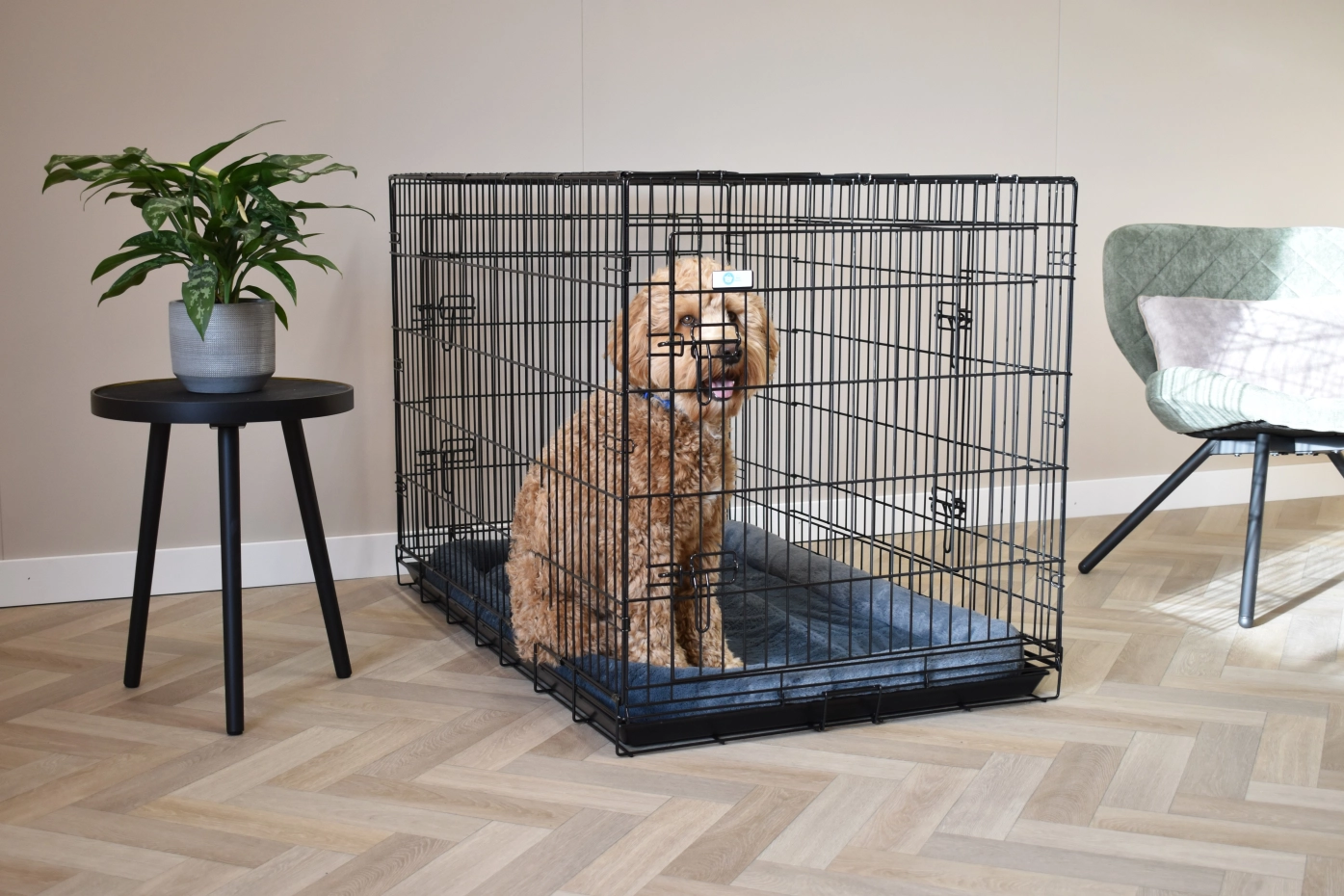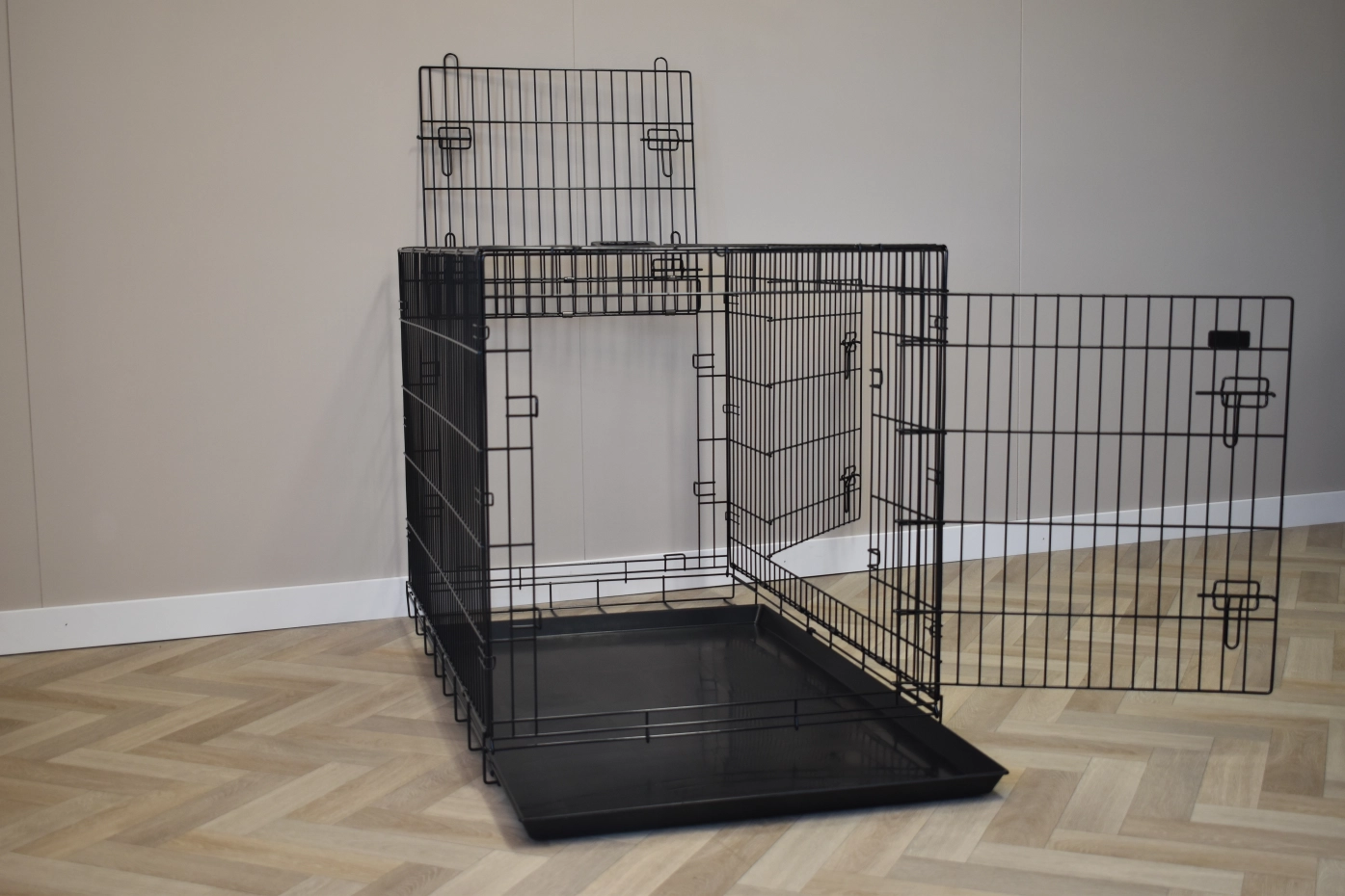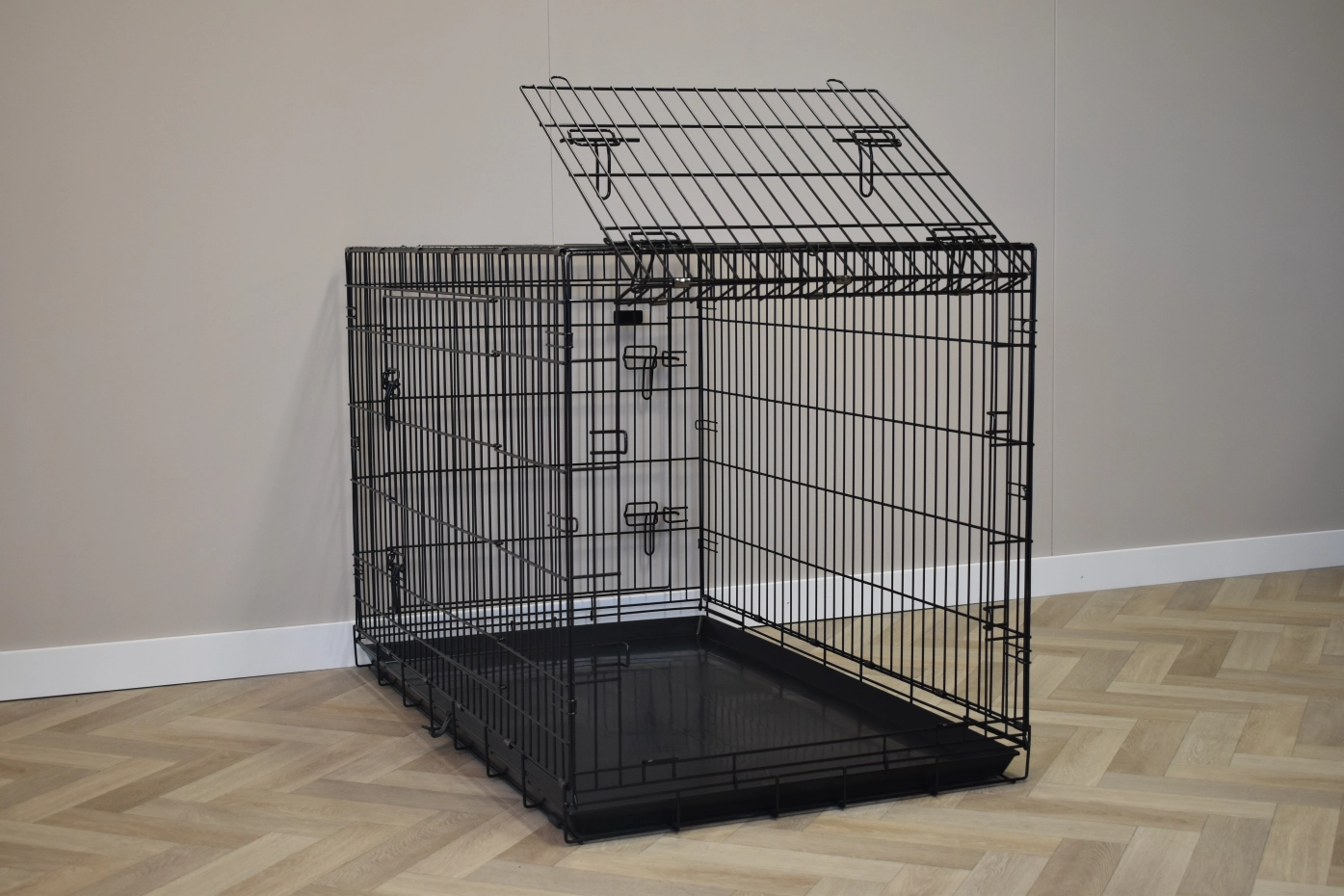 - Zeer degelijke hondenbench met dikke, zwart gepoedercoate tralies