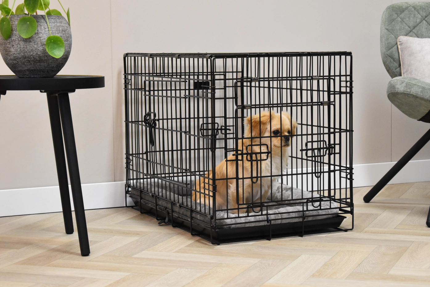 - Zeer degelijke hondenbench met dikke, zwart gepoedercoate tralies