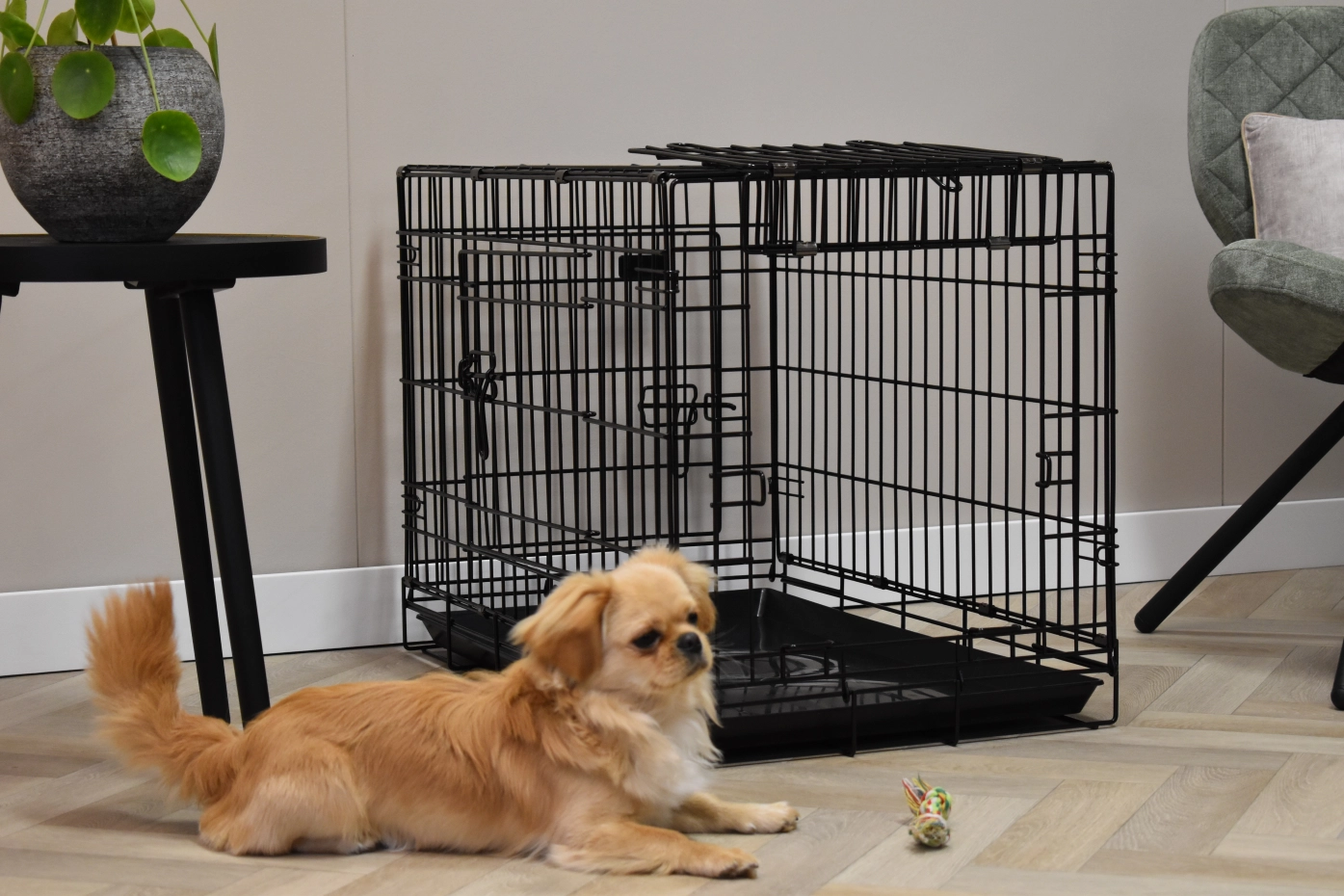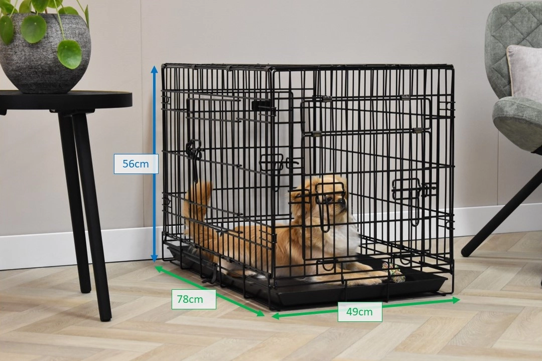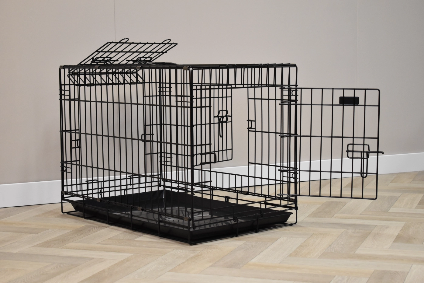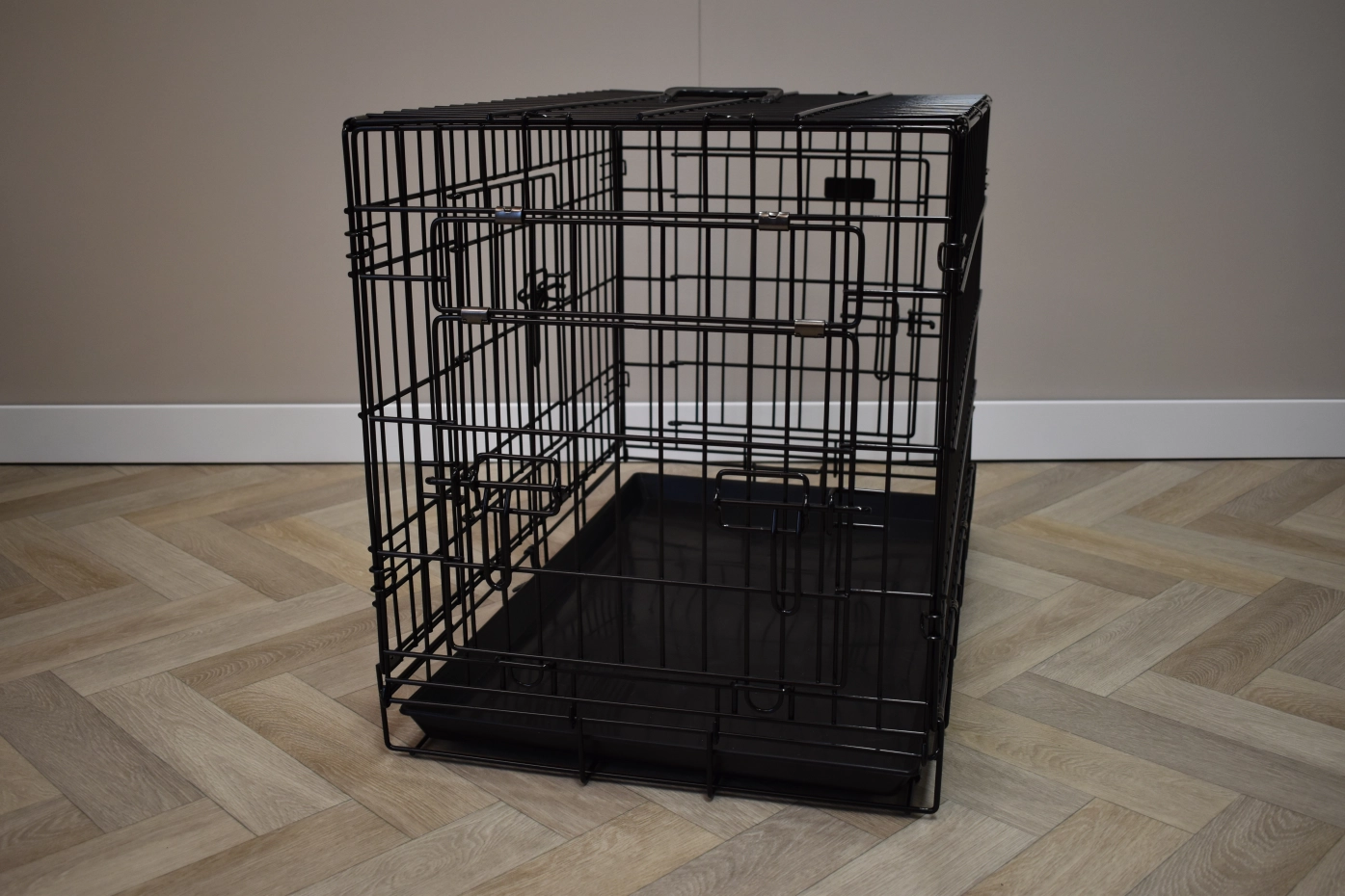 Stevige Hondenbench van 78x49cm en een hoogte van 56cm. Onze hondenbench met stevige, dikke, zwart gepoedercoate tralies is voorzien van 3 stevige deuren met schuif-/klapsluiting. Deze handige, opvouwbare hondenbench is tevens voorzien van rubber anti-slip voetjes. Ook heeft de hondenbench een uitneembare kunststof bak. Deze bench is bedoeld voor de wat kleinere hondenrassen: Beagle, Dwergschnauzer, Franse Bulldog, Pomsky, Welsh Springer Spaniel en Whippet.
