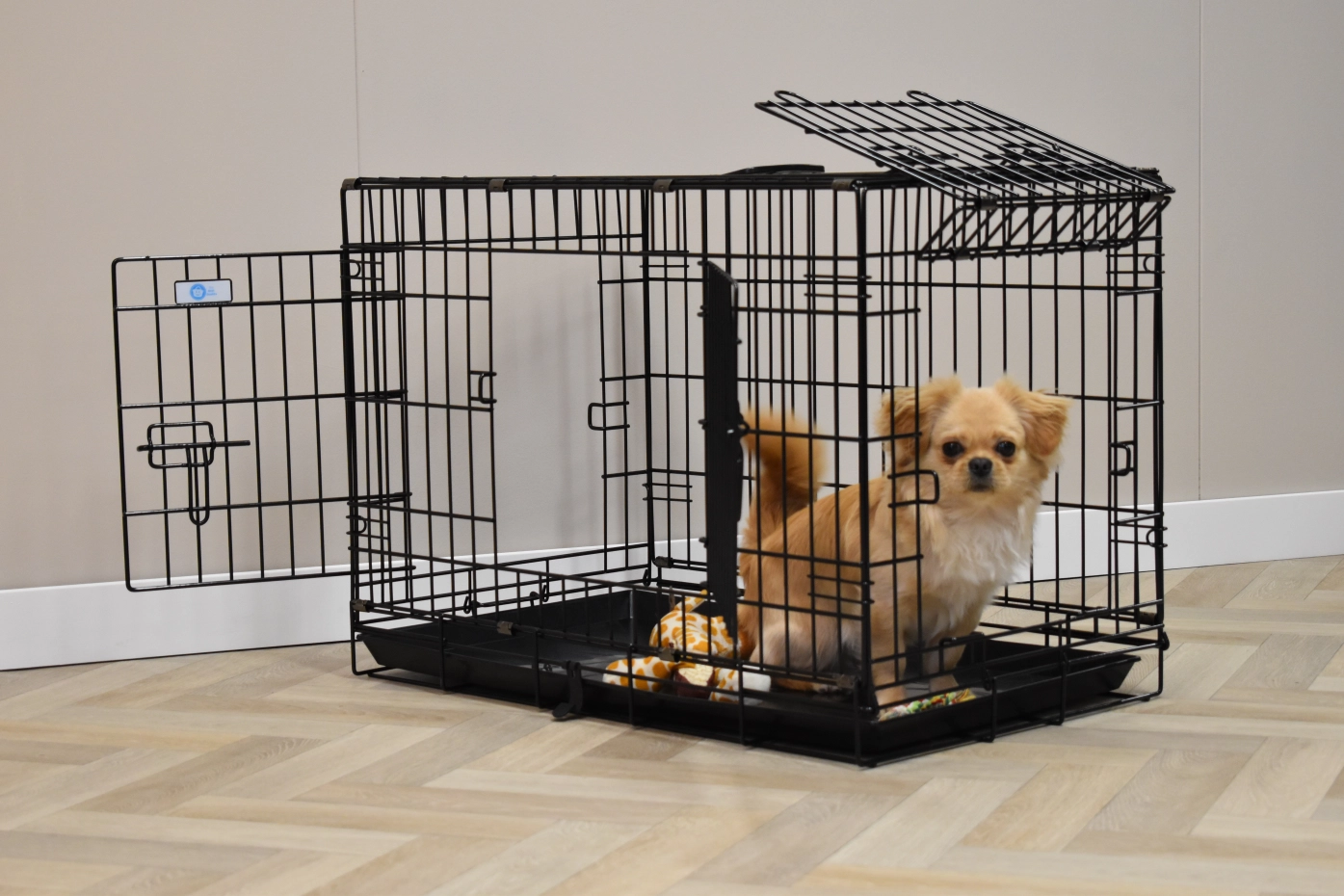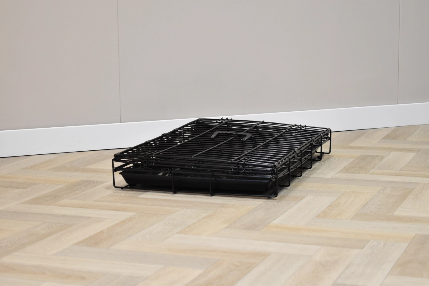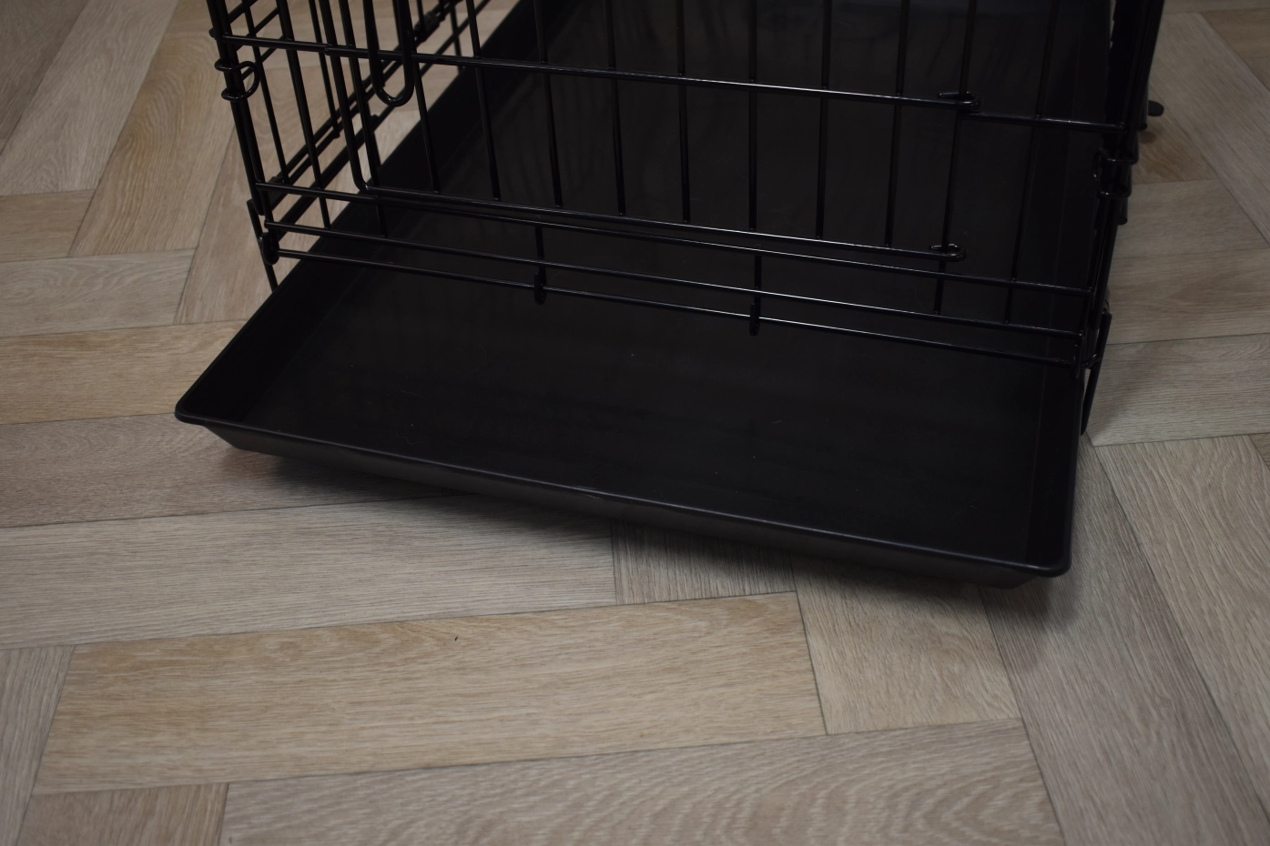 Stevige Hondenbench van 78x49cm en een hoogte van 56cm. Onze hondenbench met stevige, dikke, zwart gepoedercoate tralies is voorzien van 3 stevige deuren met schuif-/klapsluiting. Deze handige, opvouwbare hondenbench is tevens voorzien van rubber anti-slip voetjes. Ook heeft de hondenbench een uitneembare kunststof bak. Deze bench is bedoeld voor de wat kleinere hondenrassen: Beagle, Dwergschnauzer, Franse Bulldog, Pomsky, Welsh Springer Spaniel en Whippet.