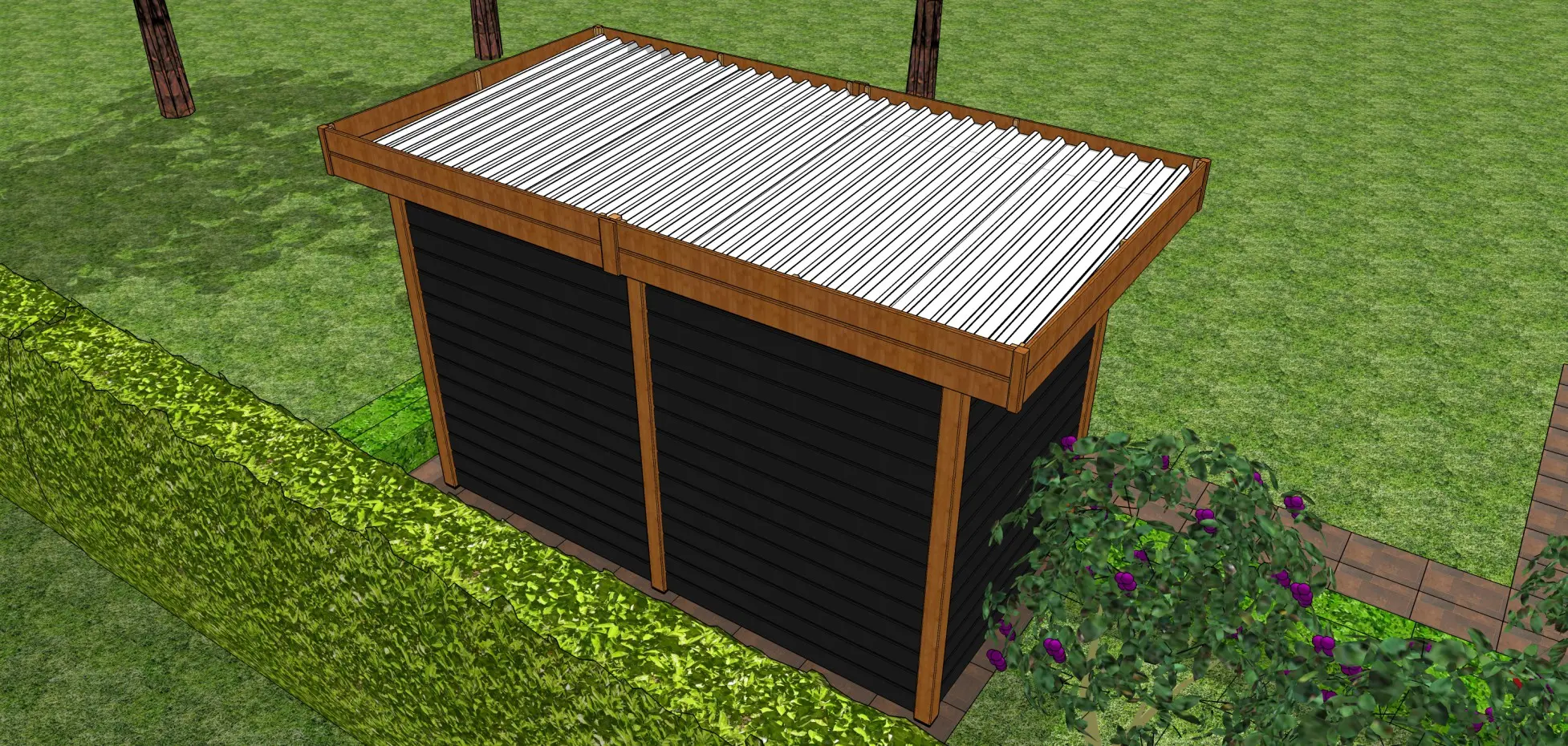 Buitenwerkse afmeting incl. dak (BxDxH) 383x209x222cm