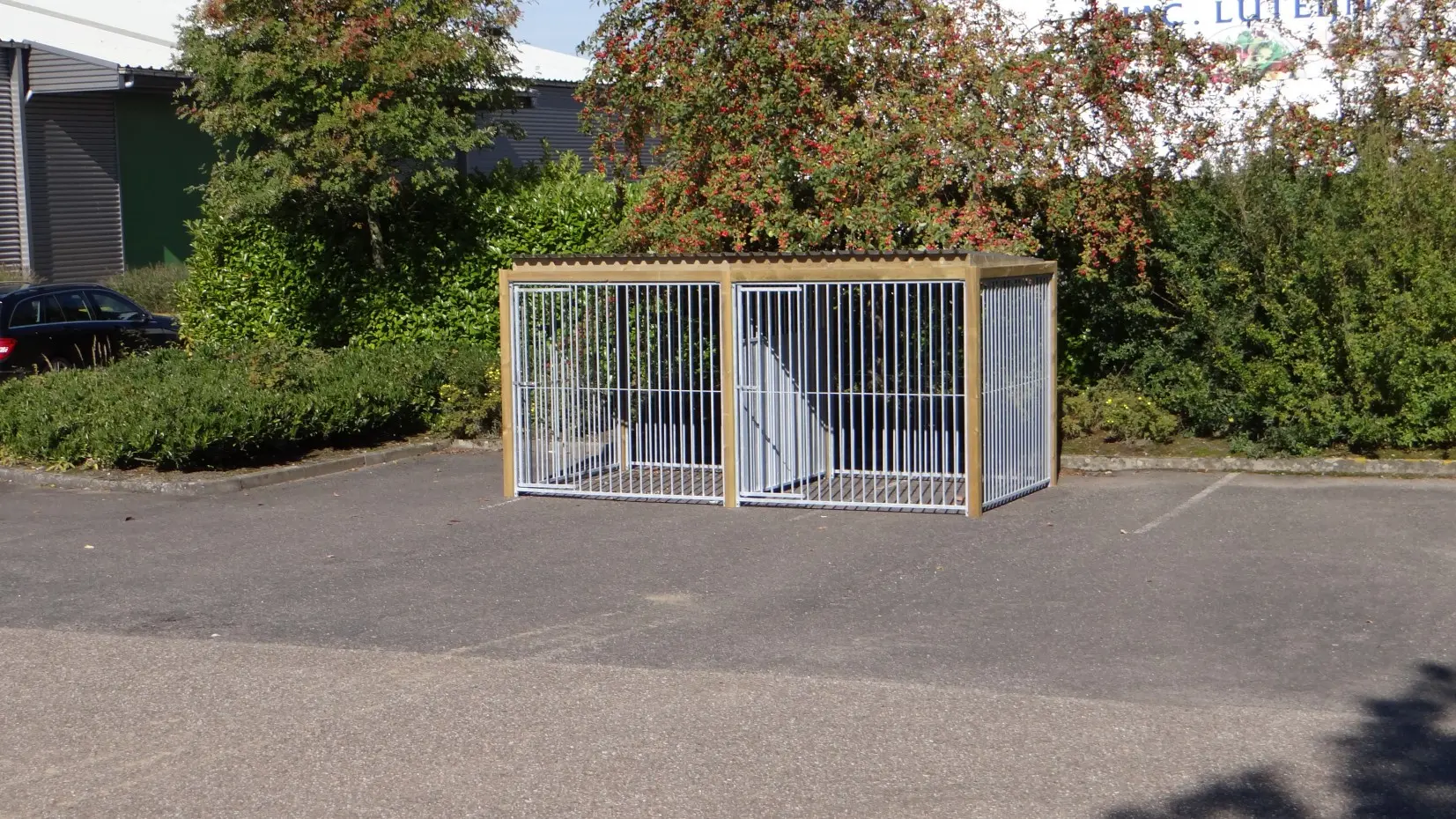 - * De kennel wordt uitgevoerd met een luxer daksysteem, zodat er aan de voor- en zijkanten een overstek ontstaat.
