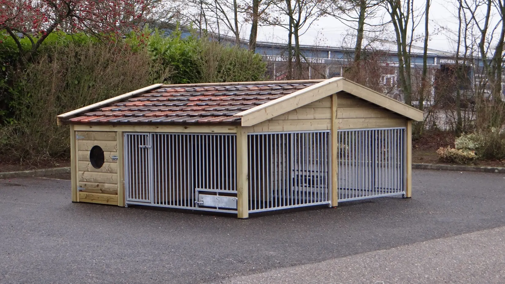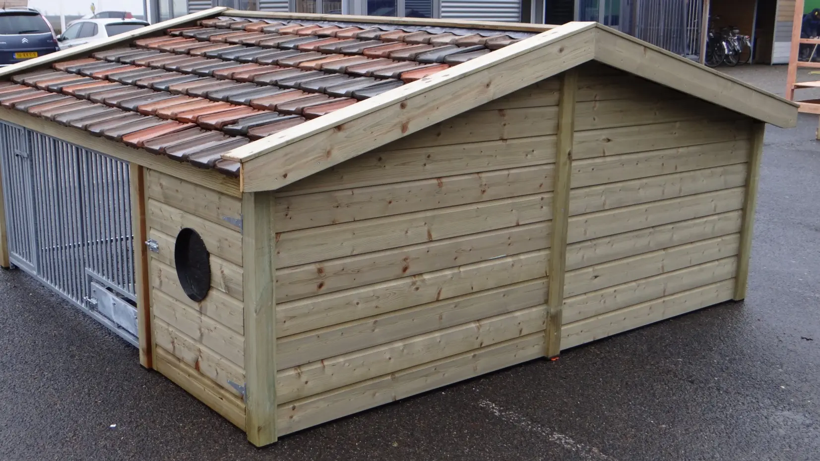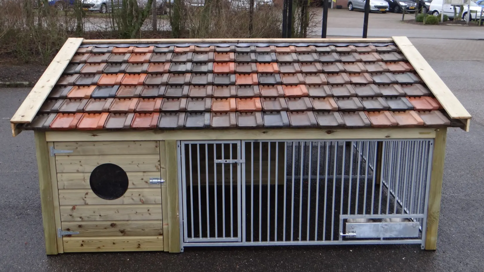 - Met keramische dakpannen: om het hondenhok extra charme te geven worden 2e hands restauratie dakpannen gebruikt