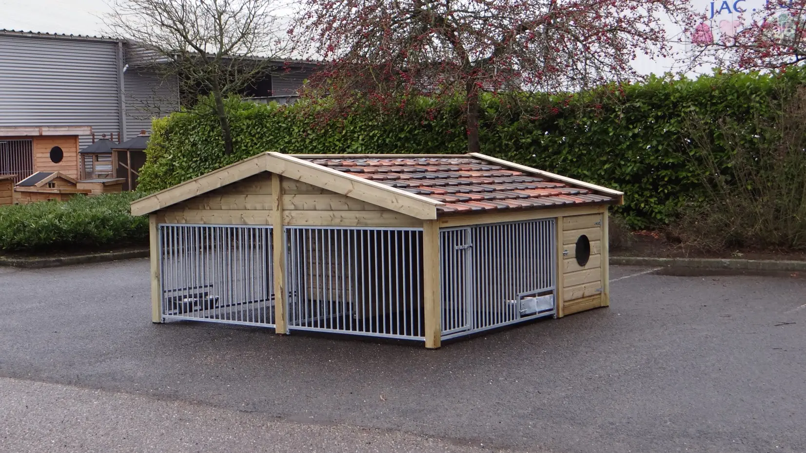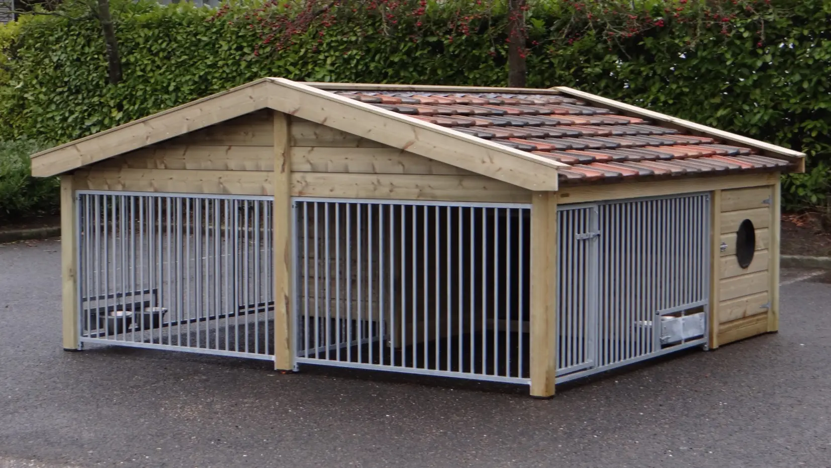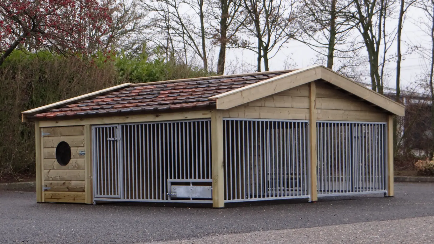 - Met keramische dakpannen: om het hondenhok extra charme te geven worden 2e hands restauratie dakpannen gebruikt