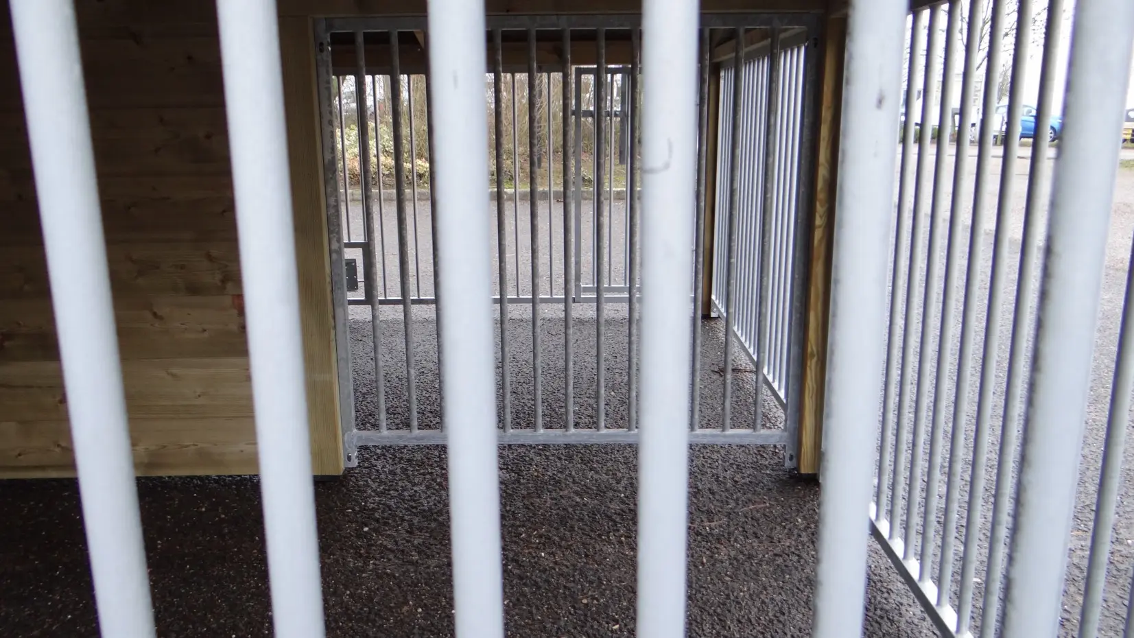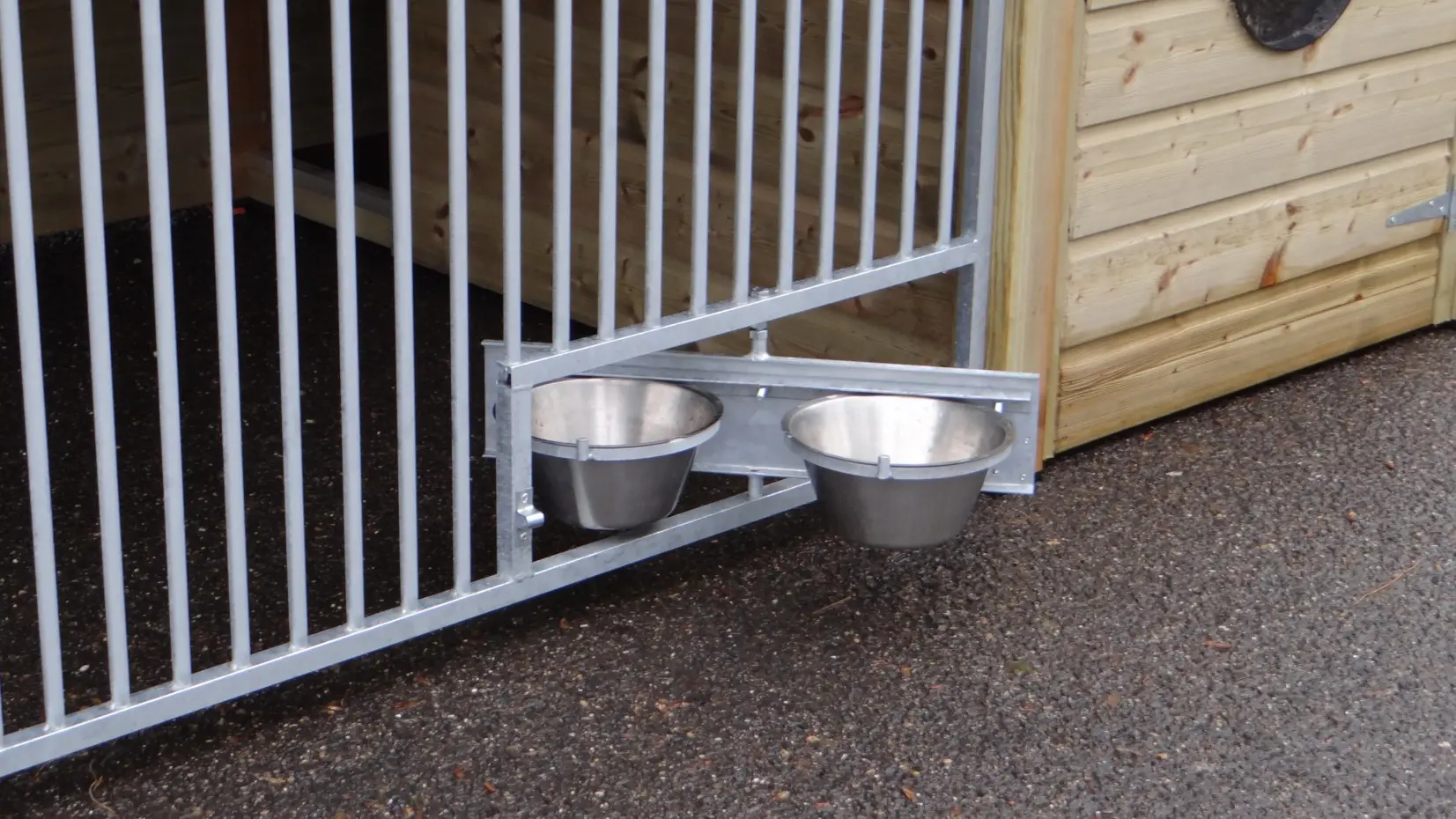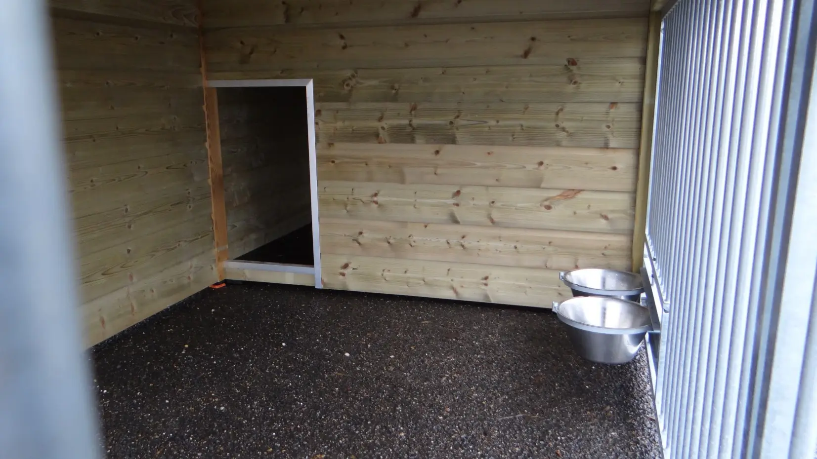 - Dit type 2 is voorzien van 2 traliepanelen: 1 aan de voorkant (met deur) en 1 aan de zijkant van de ren.