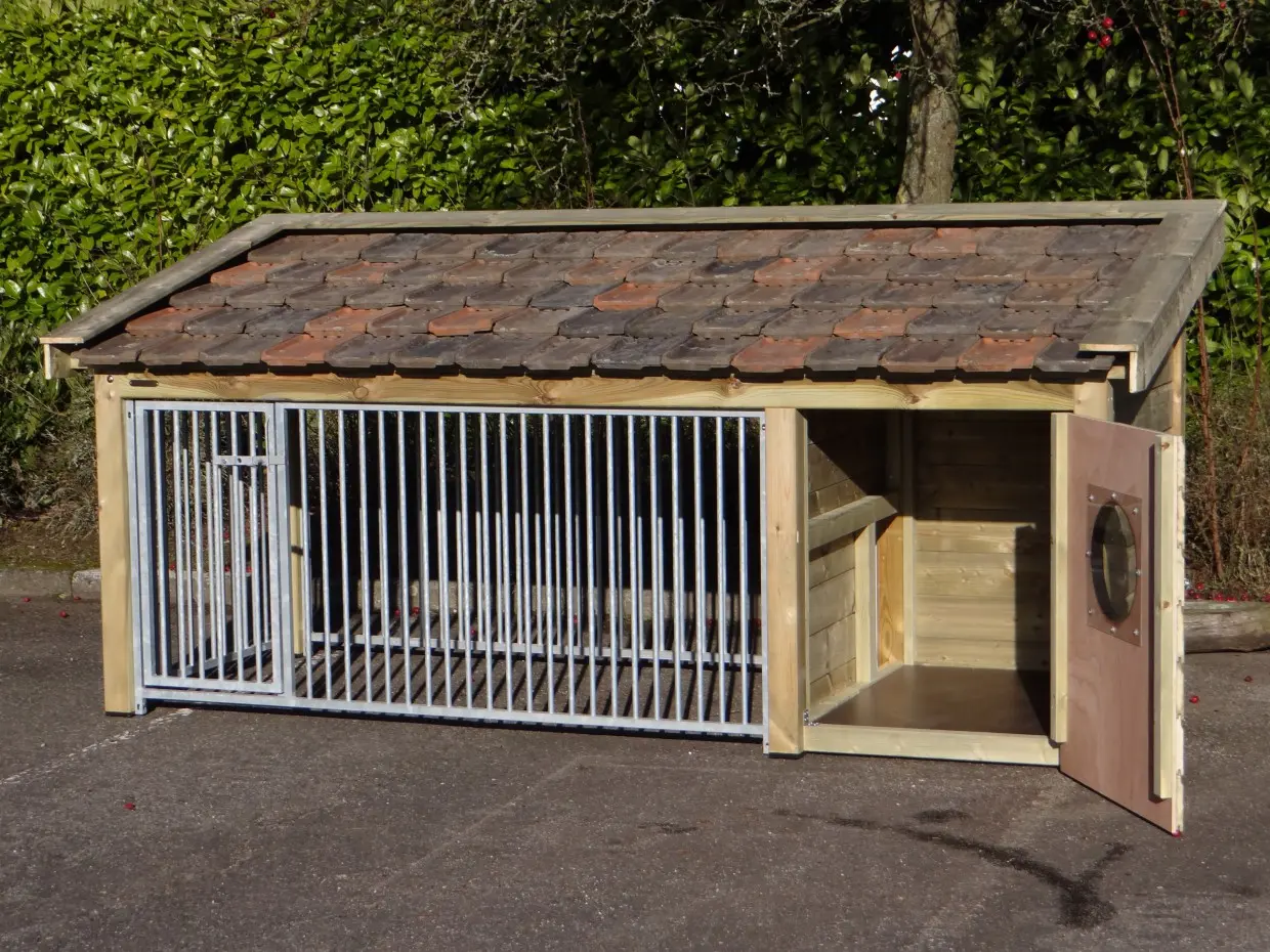 • Met keramische dakpannen: om het hondenhok extra charme te geven worden 2e hands restauratie dakpannen gebruikt