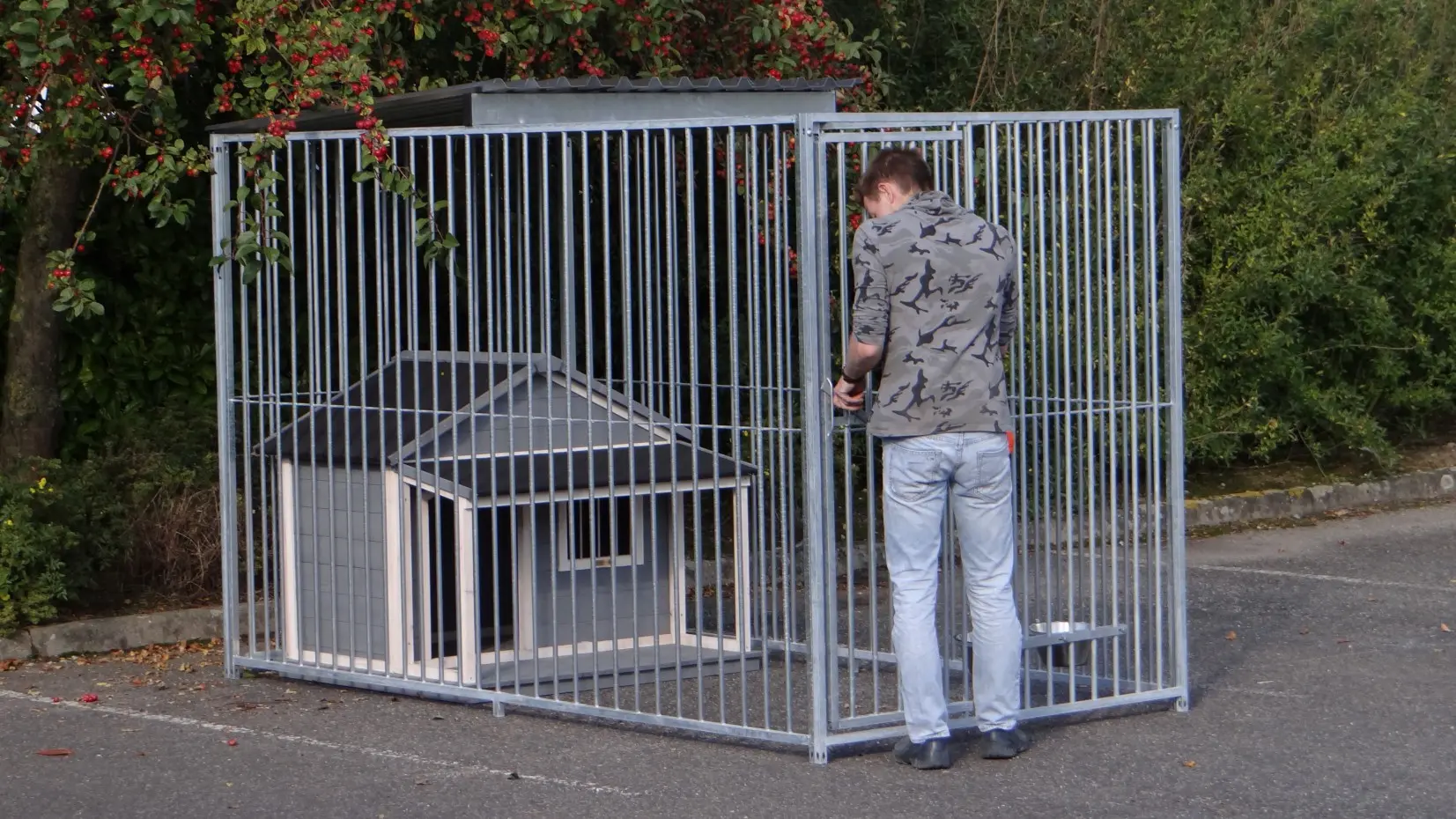 • De kenneldeur zit standaard aan de linkerkant, draait naar binnen toe open en heeft de mogelijkheid voor een hangslot