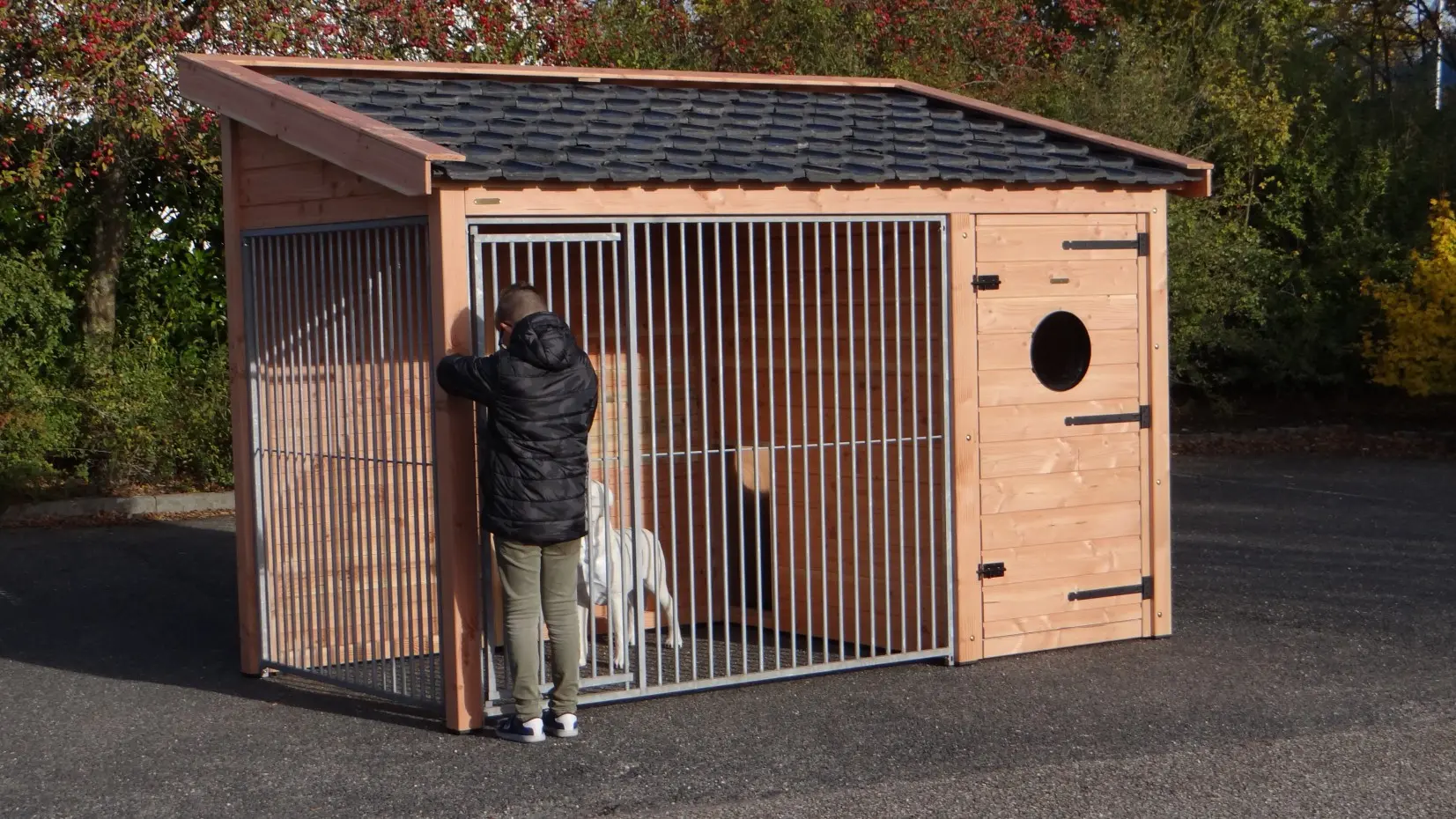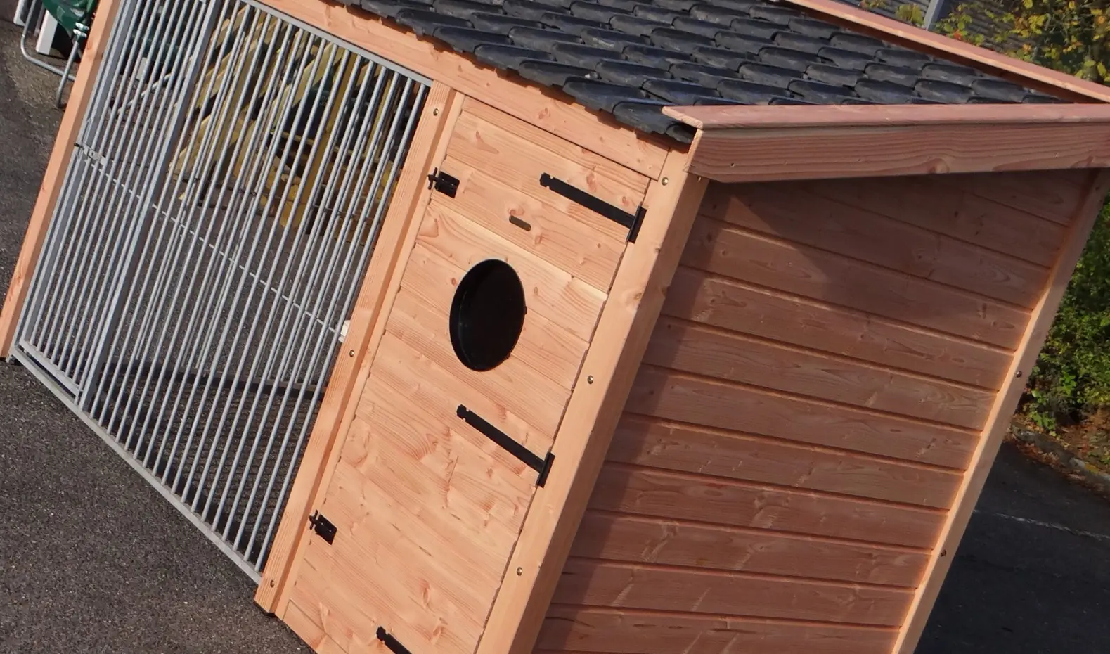 - Met keramische dakpannen: om het hondenhok extra charme te geven worden 2e hands restauratie dakpannen gebruikt