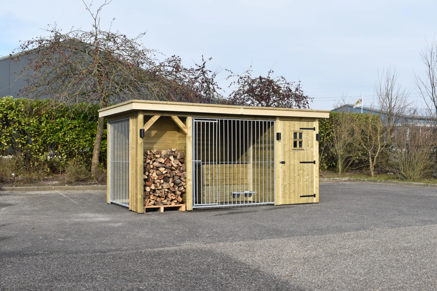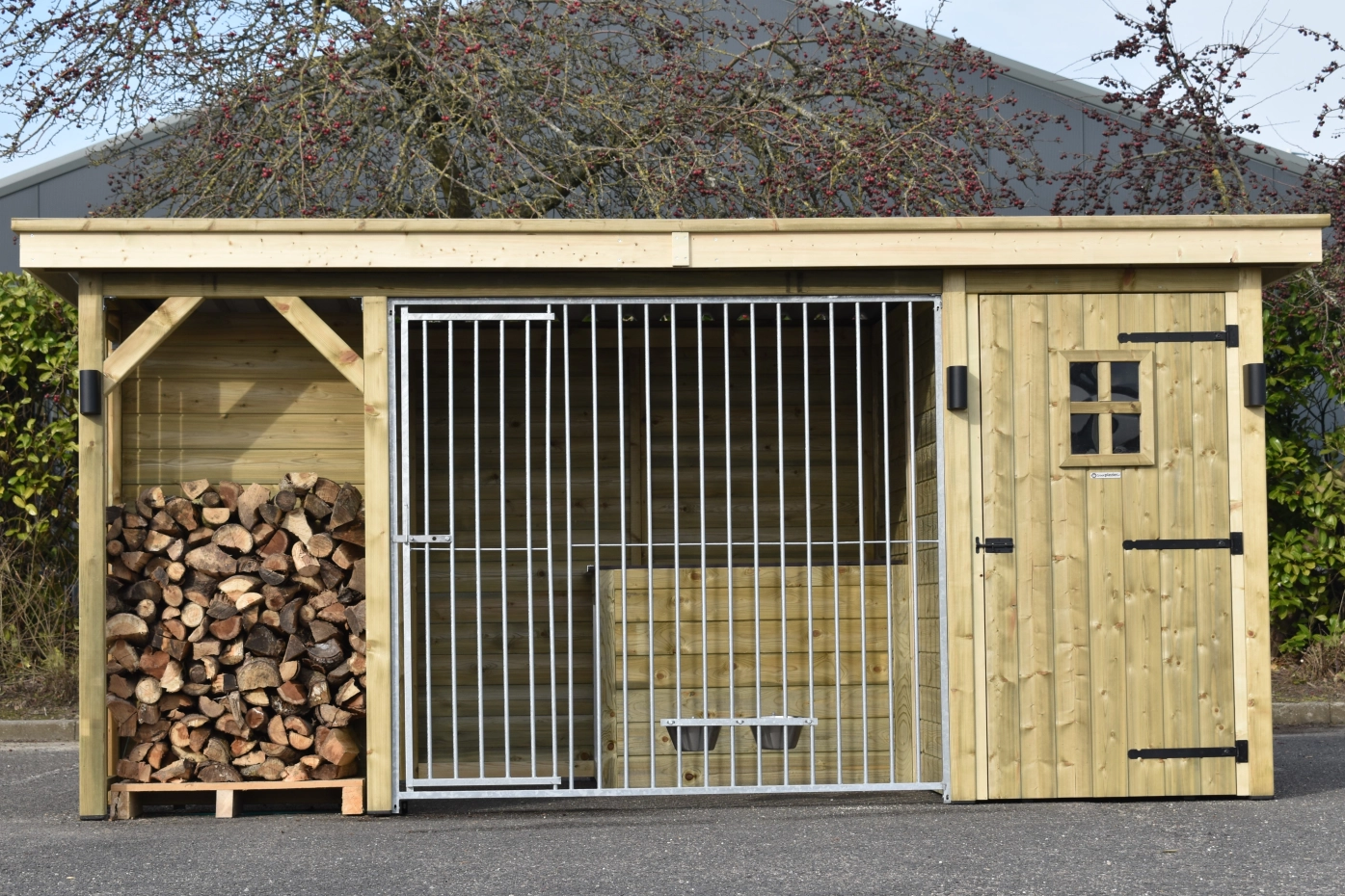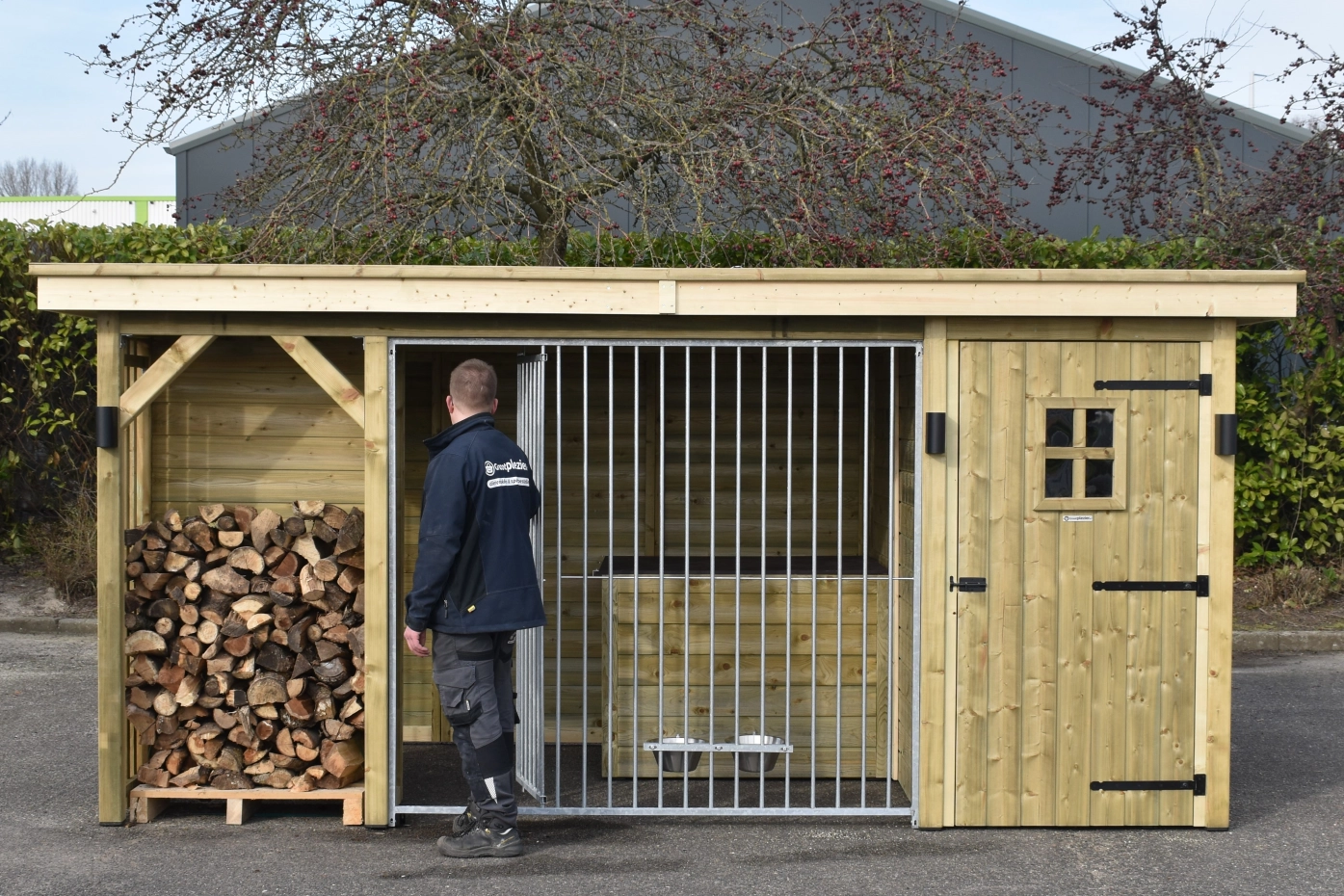 Hondenkennel Modul COMBI met opberghok, nachthok en haardhout vak