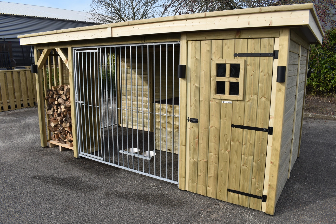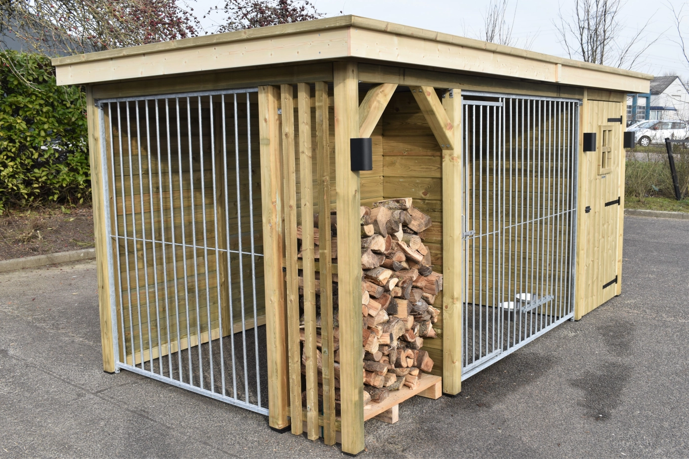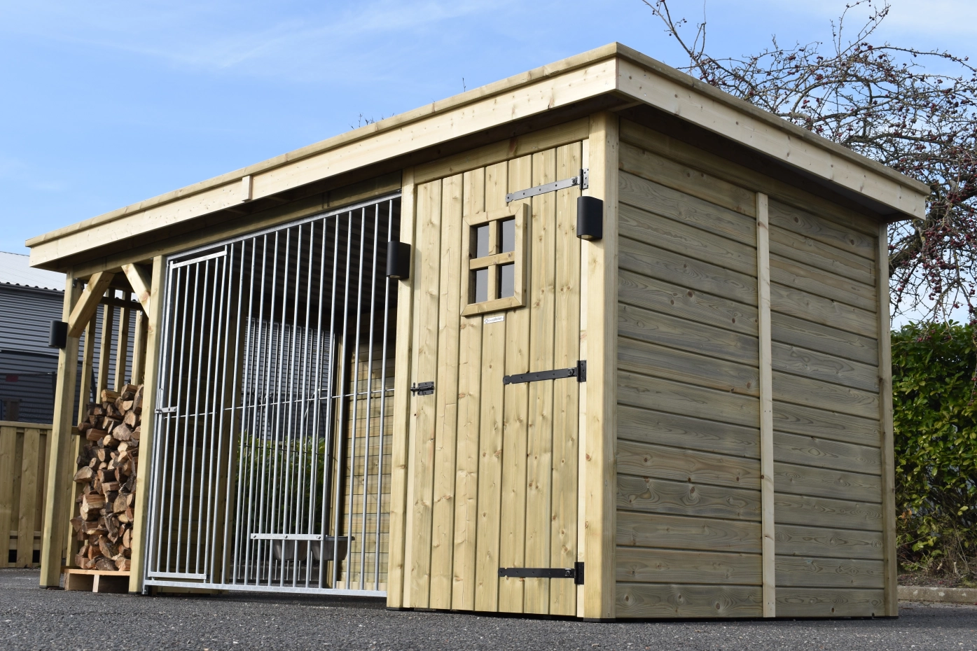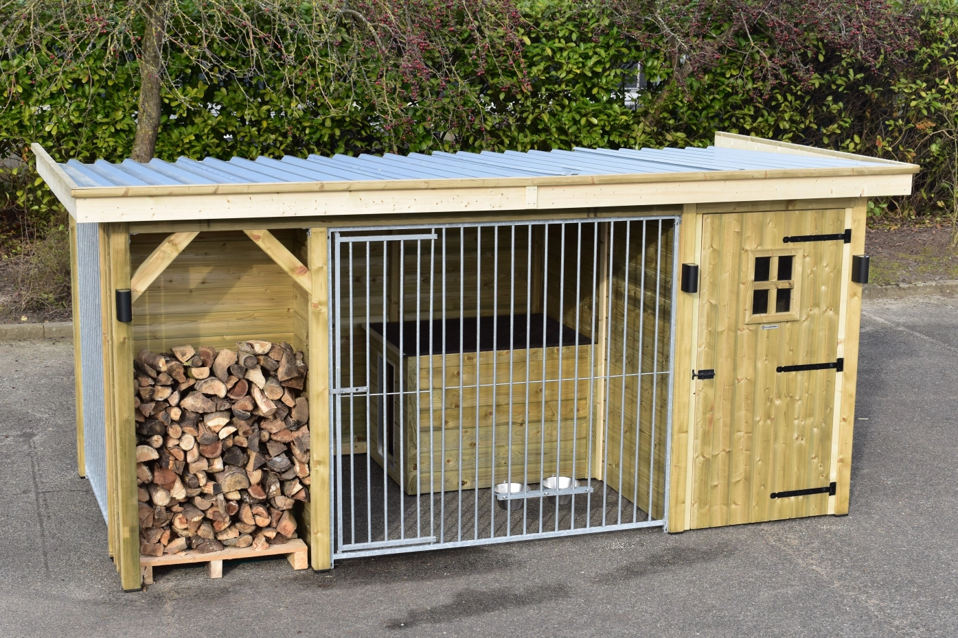 Hondenkennel Modul COMBI met opberghok, nachthok en haardhout vak