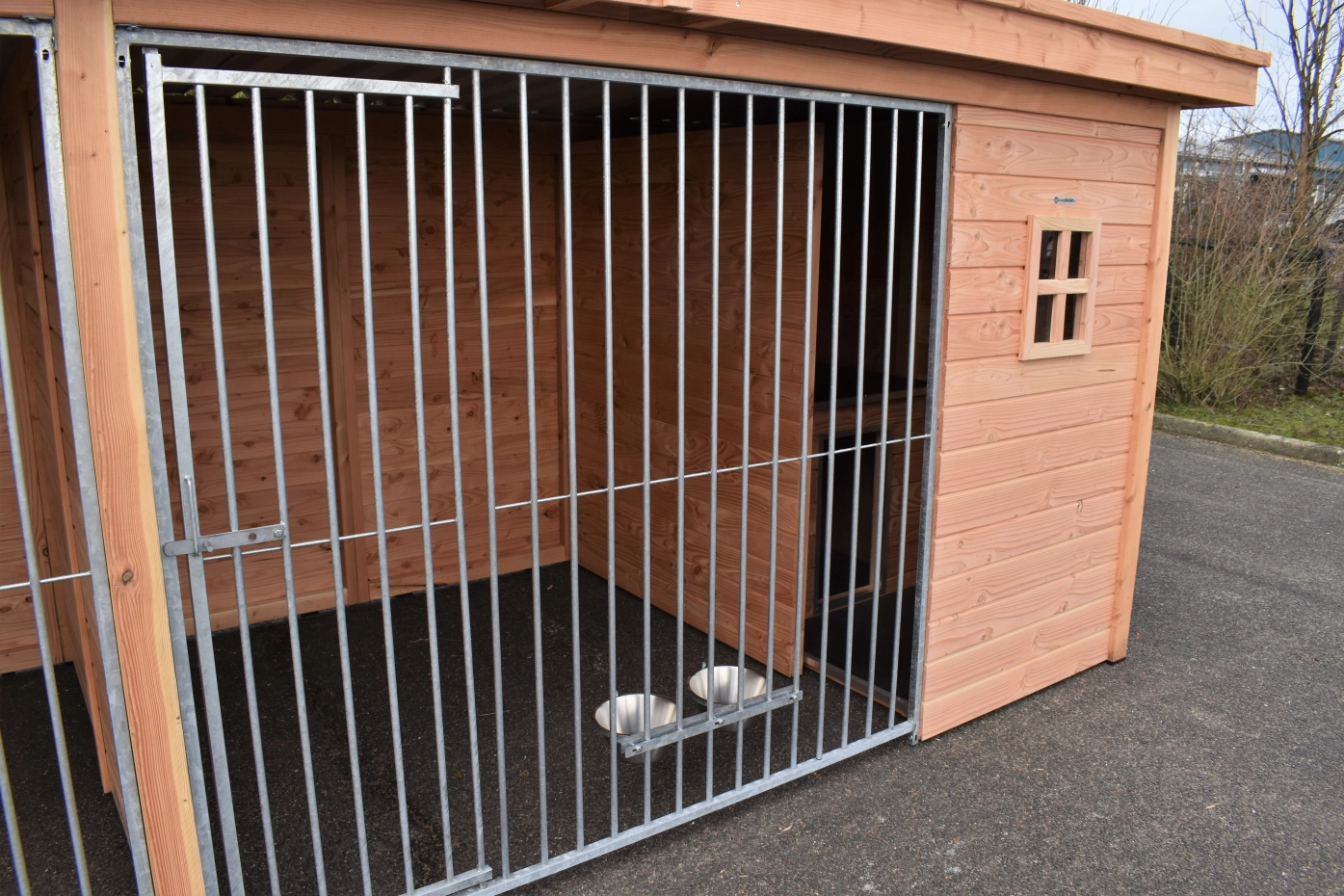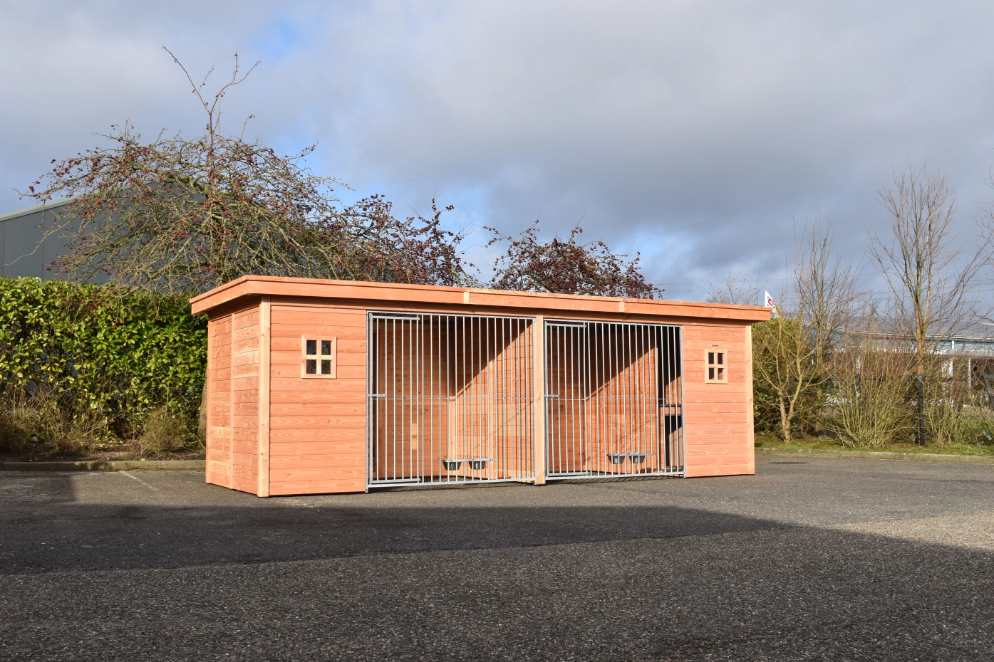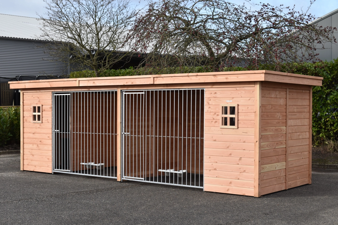 - De houten wanden zorgen voor beschutting tegen wind, neerslag en zon. Hierdoor ontstaat een beter klimaat in de kennel, het hele jaar door.