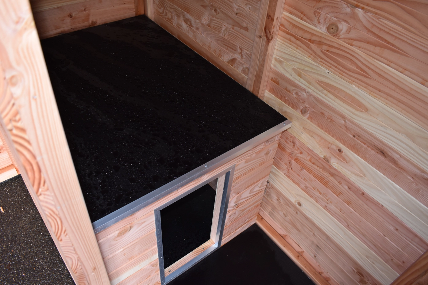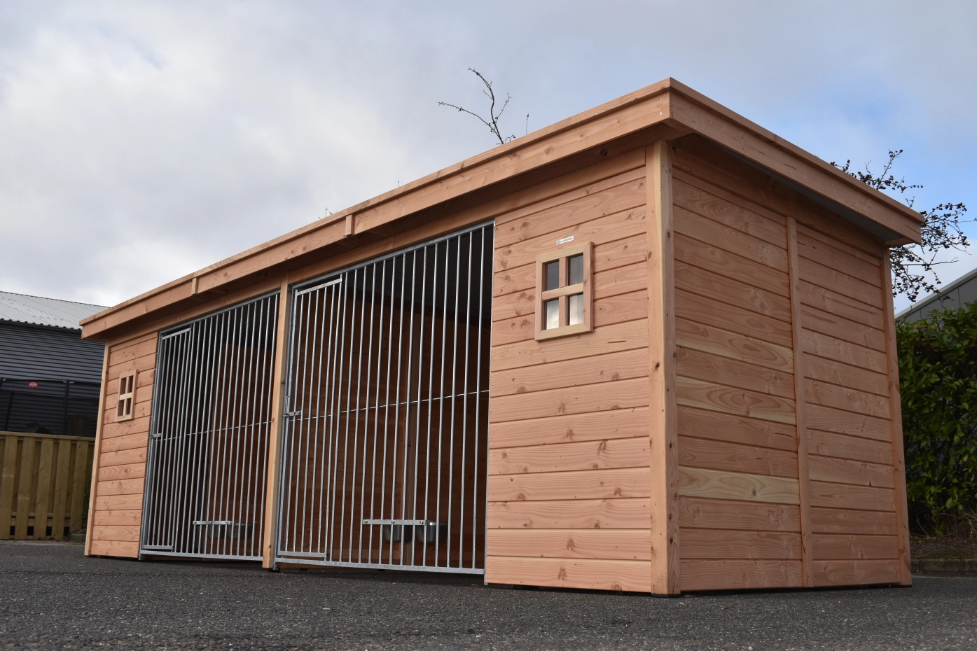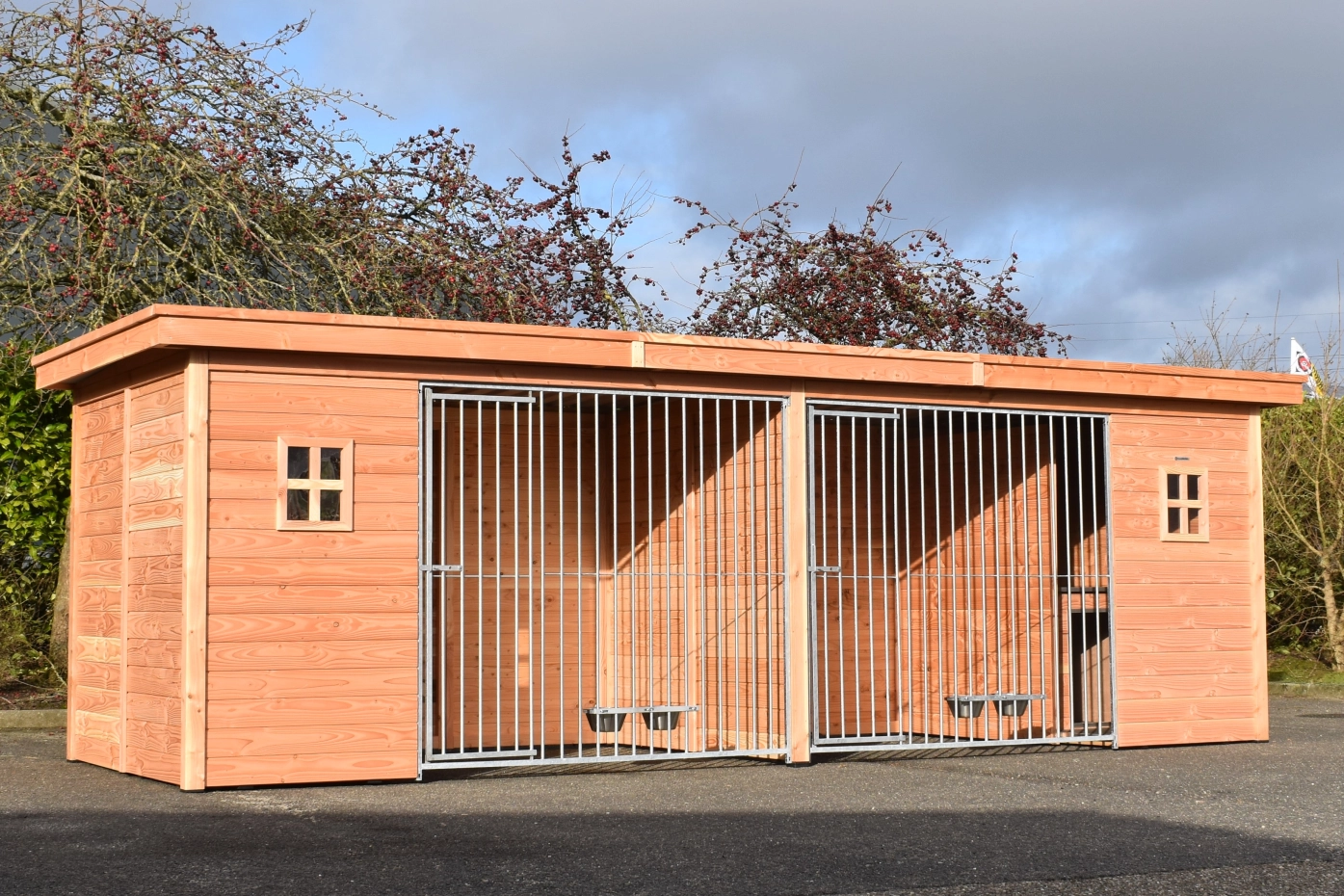 - De houten wanden zorgen voor beschutting tegen wind, neerslag en zon. Hierdoor ontstaat een beter klimaat in de kennel, het hele jaar door.