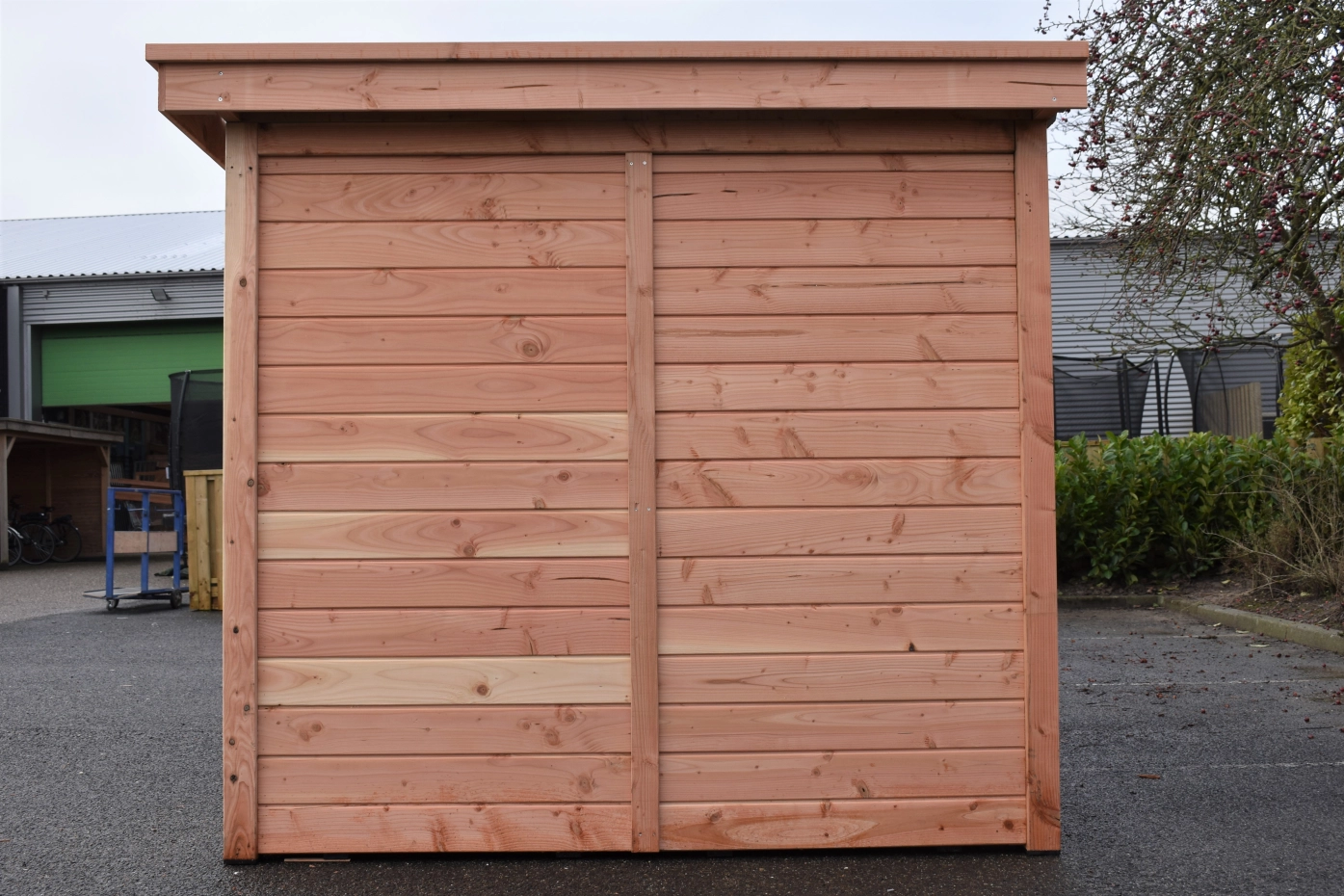 - Onbehandeld Douglashout met een gemiddelde levensduur van ca. 15 jaar. Behandeling is niet nodig. Wel zal het hout vergrijzen door de zon.