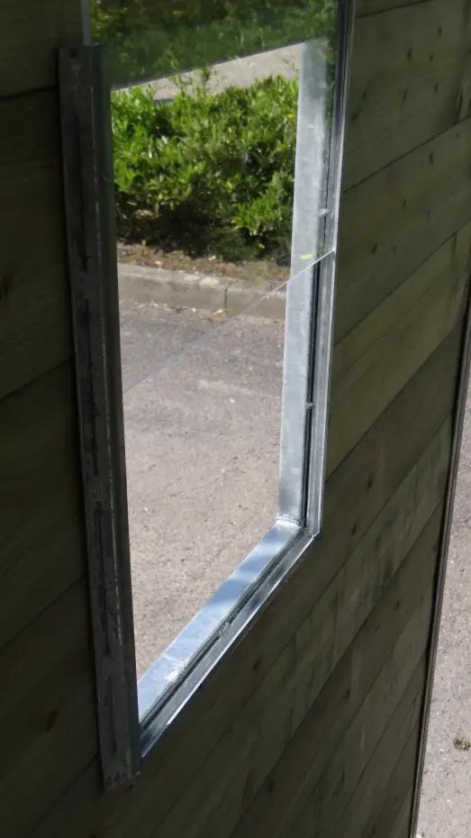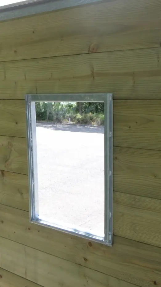 Een houten kennelpaneel kunt u gemakkelijk voorzien van een raampje. Zo komt er extra licht in een donker hoekje van de kennel. Het raampje wordt geleverd als een verzinkt stalen frame met een buitenwerkse afmeting van ca. 28x42cm (BxH). In het frame zit een plexiglasplaatje van 4mm dik. Aan de binnenkant van de kennel kan het plexiglas er vanaf de bovenkant in- en uitgeschoven worden.