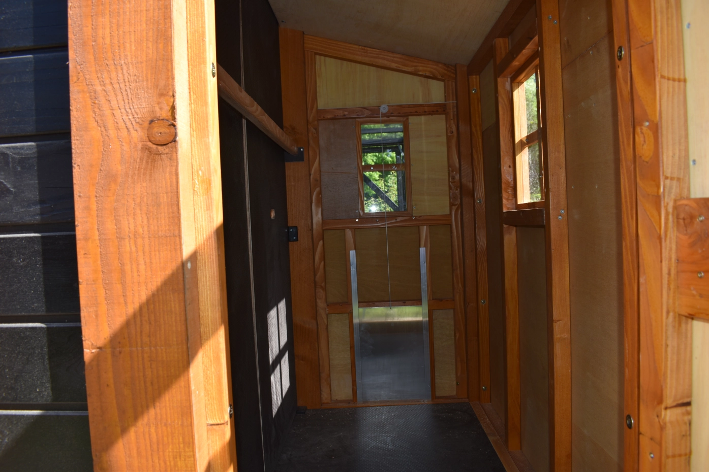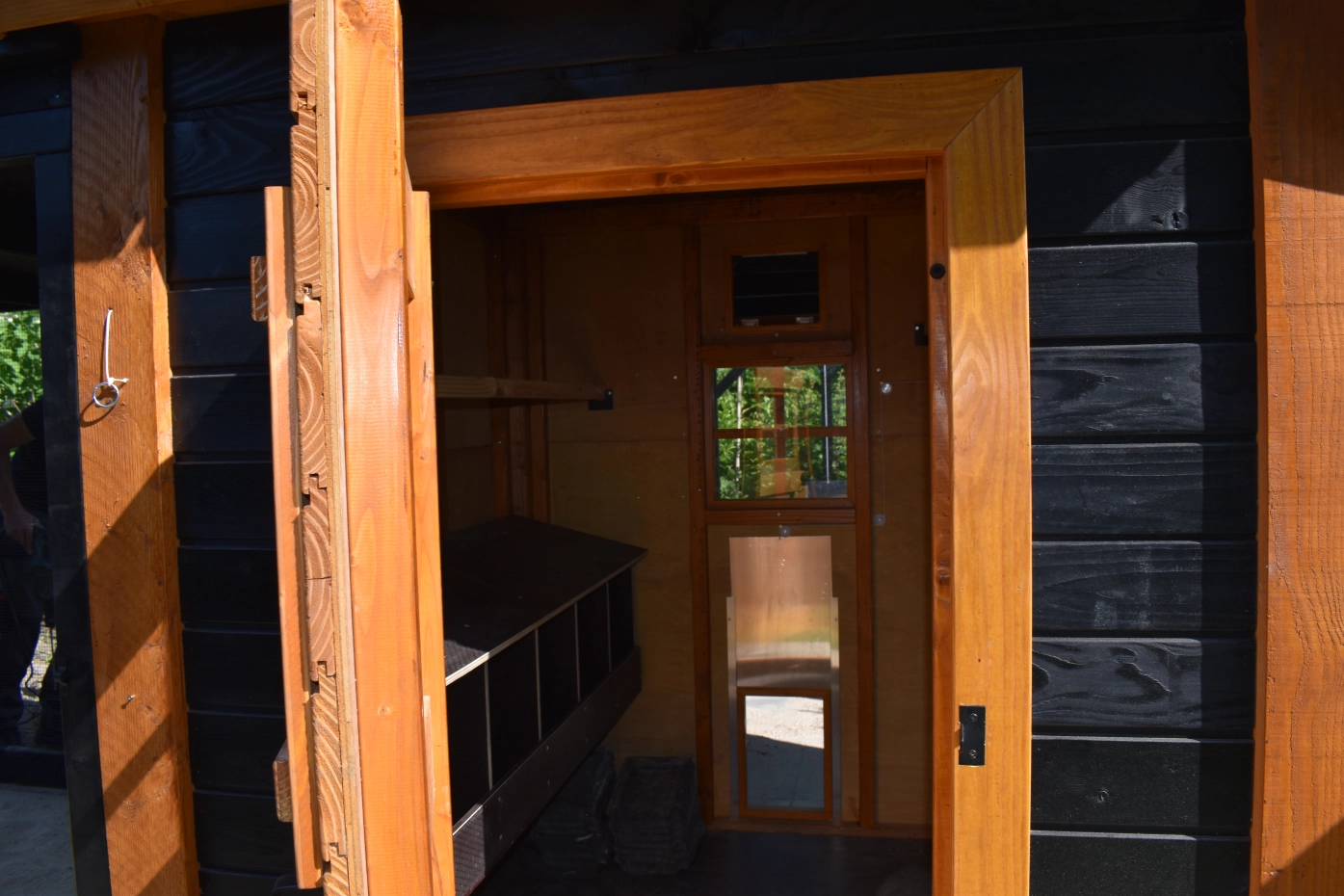 - De binnenkant van het nachthok is betimmerd met hardhout multiplex