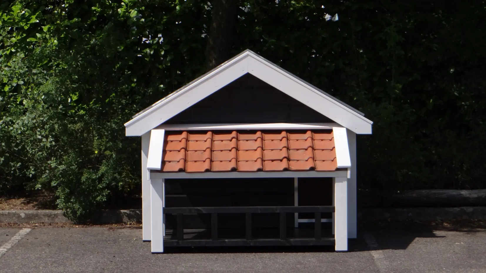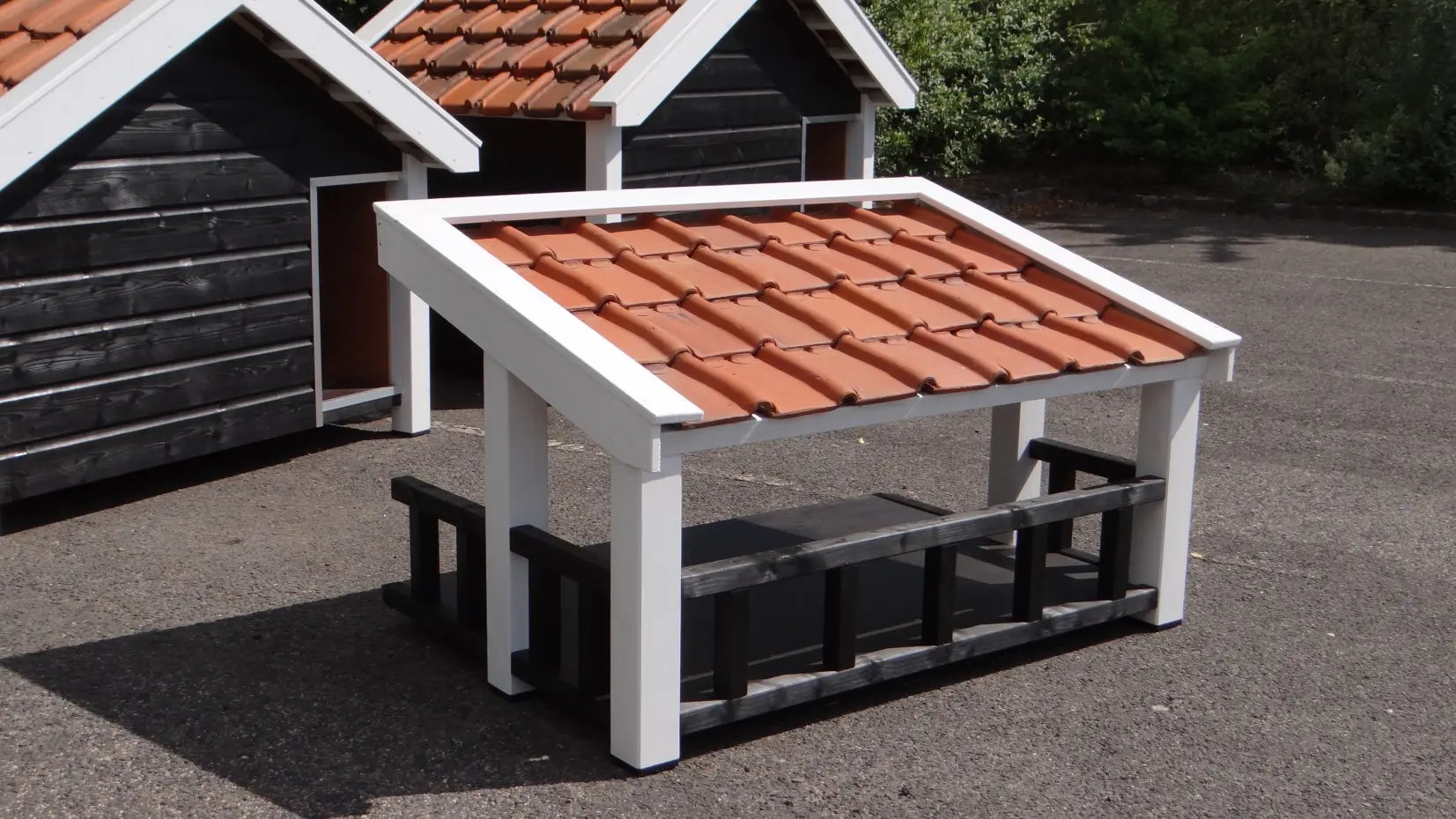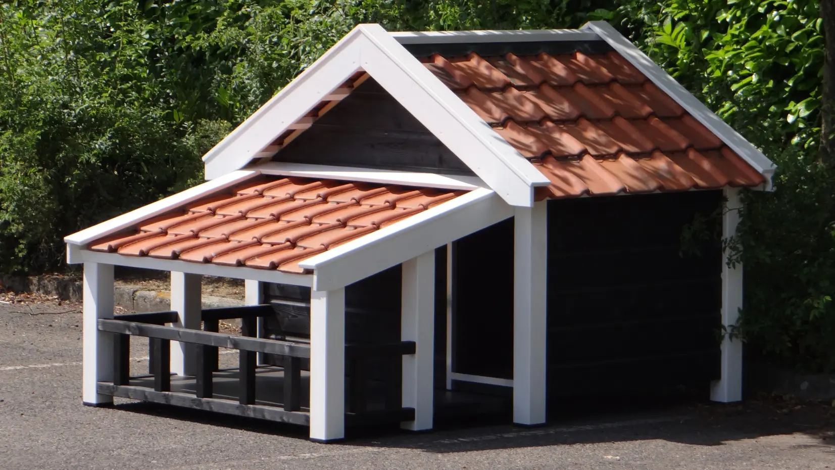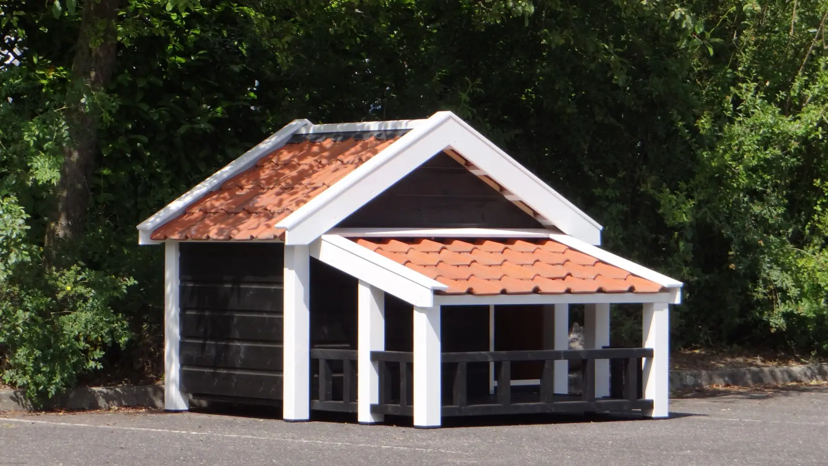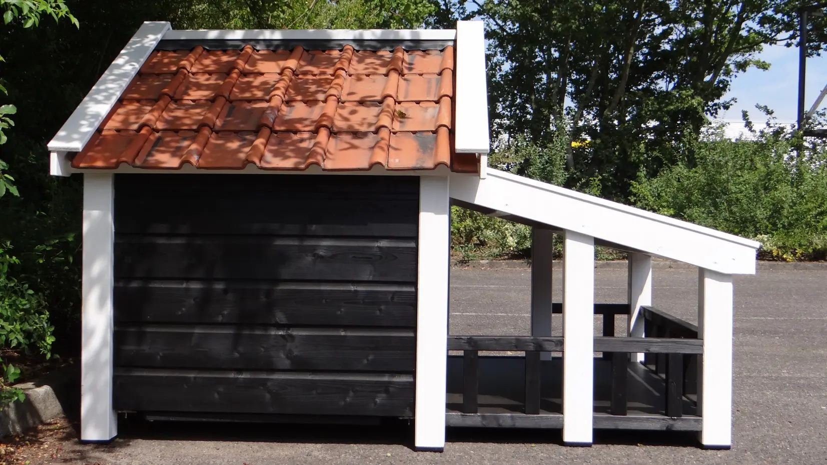 - Met keramische dakpannen: om het hondenhok extra charme te geven worden 2e hands restauratie dakpannen gebruikt