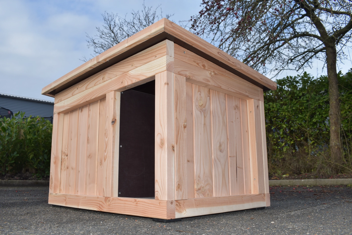 Hondenhok Block Medium is gemaakt van Douglashout. Een degelijk en robuust hok met een lange levensduur! De binnenzijde is afgewerkt met isolatie plaatjes van 3,5cm dik. Onder de vloer zitten harde isolatie plaatjes. Het geeft uw honden een warm plekje. Dit geïsoleerde hok is geschikt voor kleine tot middelgrote honden, zoals een Keeshond, Beagle, en Schnauzer. Het hondenhok is ook verkrijgbaar in grotere afmetingen.