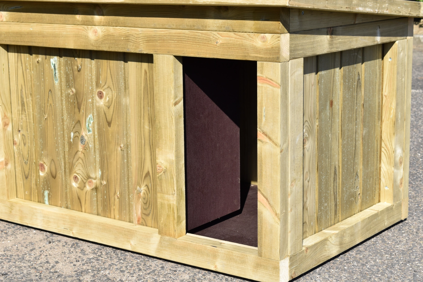 Hondenhok Block Medium is gemaakt van geïmpregneerd vurenhout. Het hok is geschikt voor kleine tot middelgrote honden, zoals een Keeshond, Beagle, en Schnauzer. Het hondenhok is ook verkrijgbaar in grotere afmetingen.