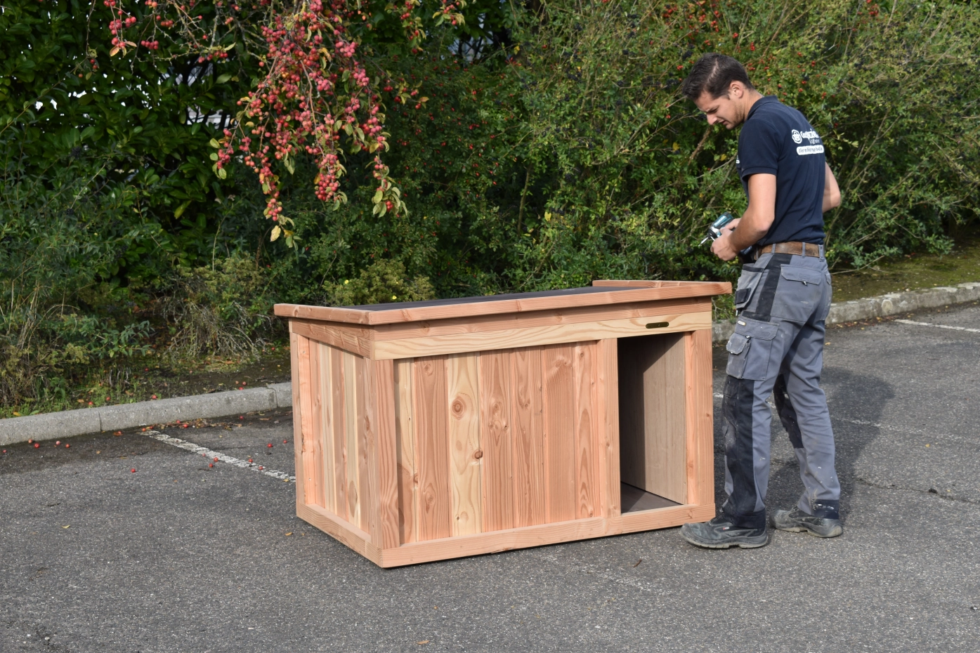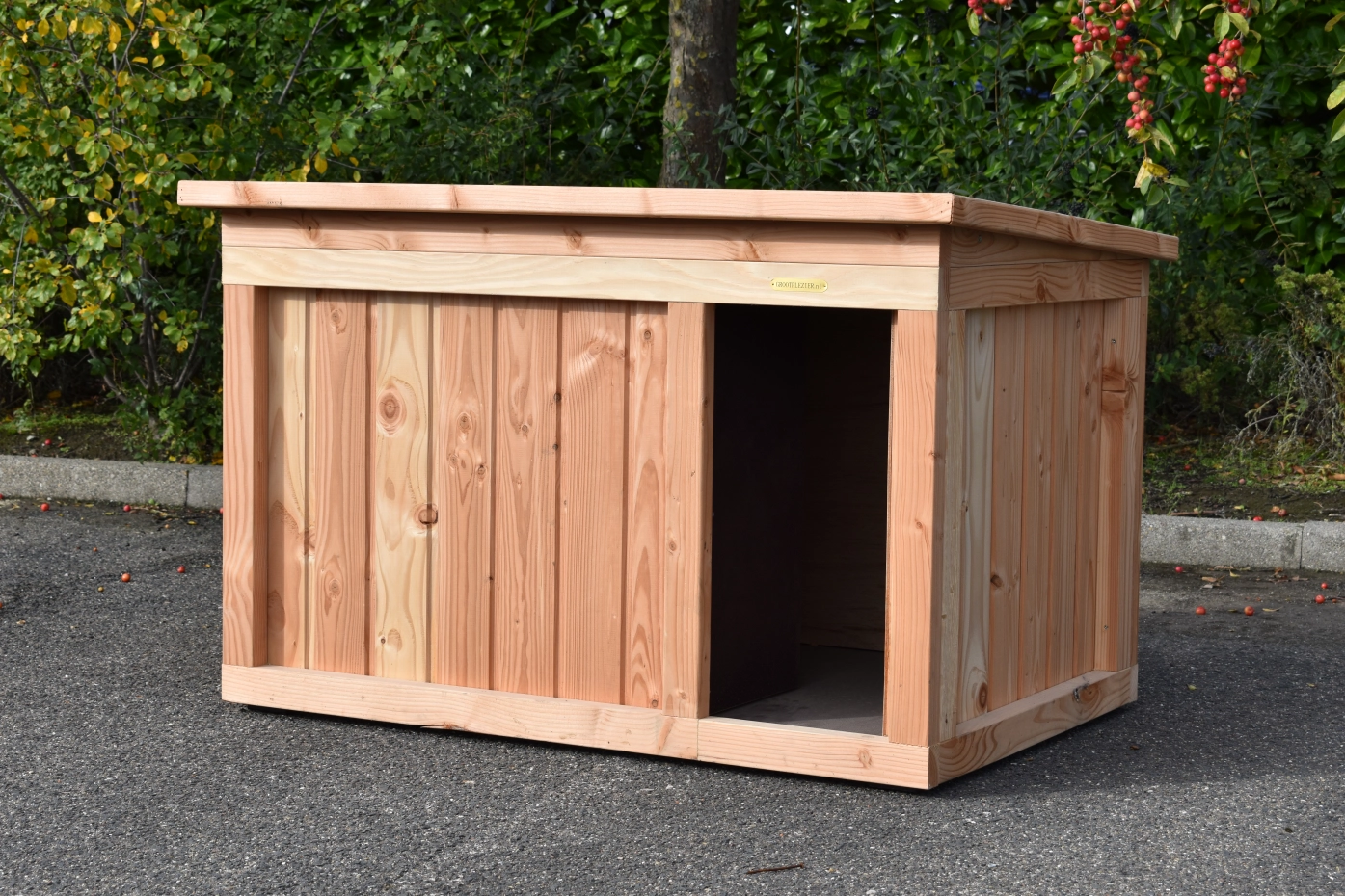 Hondenhok Block Large geïsoleerd is een kwaliteitshok voorzien van isolatie. Het is dan ook zomer en winter geschikt voor middelgrote tot grote honden zoals Herdershond, Retriever, Rottweiler, Boxer, Sennenhond. Omdat het hondenhok 149cm breed is past het in hondenkennels van 150cm diep. Wanden, vloer en dak zijn voorzien van 3 cm isolatie.