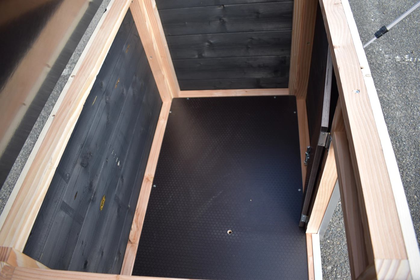 - Met zwart kunststof voetjes, waardoor het hok eenvoudiger te verplaatsen is en de poten beschermd zijn tegen vocht