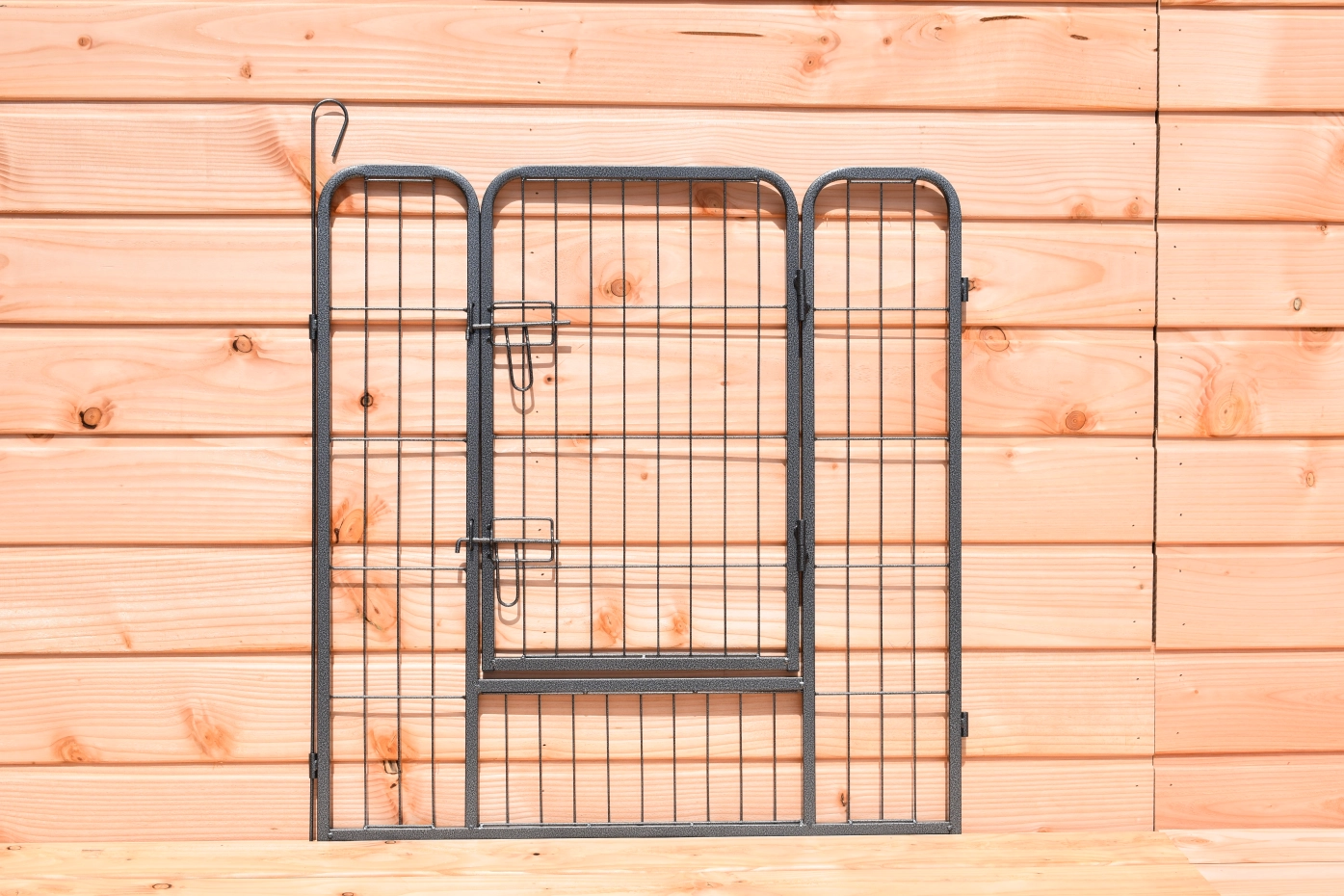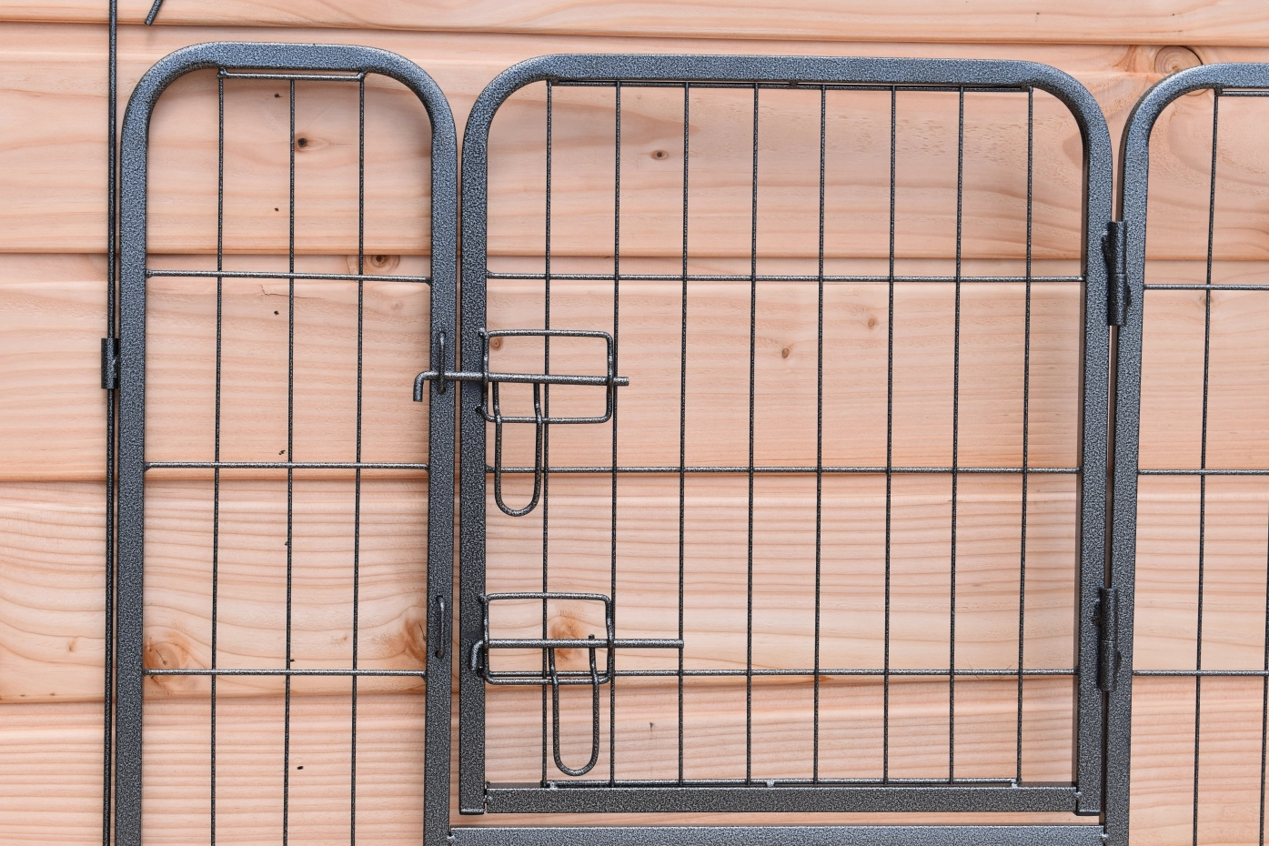 • De puppyren panelen zijn met elkaar verbonden met lange pennen. Met de lange pennen kan de ren ook in de grond vastgezet worden