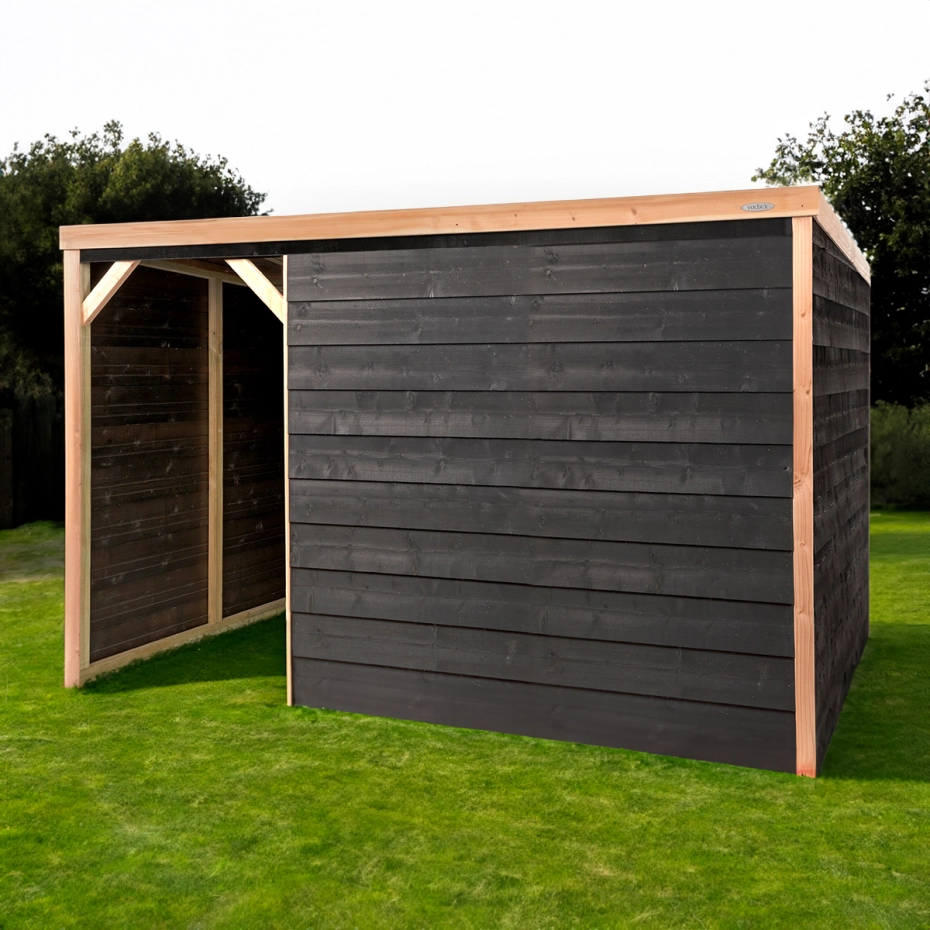 De zwart gepotdekselde schuilstal December is een aanwinst voor uw dieren. Deze ruime schuilstal heeft een (buitenwerk) grondmaat van (L) 314 x (B) 203 centimeter en is geschikt voor kleine boerderijdieren zoals; kippen, ganzen en eenden maar biedt ook voldoende ruimte voor bijvoorbeeld schapen, geiten of een shetlander. De stal is opgebouwd met een grenen frame, deze houtsoort is behandeld voor langdurig buitengebruik. De buitenzijde is voorzien van zwart potdeksel en Douglas houten details. Deze spraakmakende kleurencombinatie geven een prachtige uitstraling aan de stal. Het dak is volledig gesloten en afgewerkt met sterk dakleer voor een optimale afwatering. De December variant heeft een grotendeels gesloten voorzijde met een vrije doorgang, hierdoor biedt hij optimale bescherming tegen wind en regen.