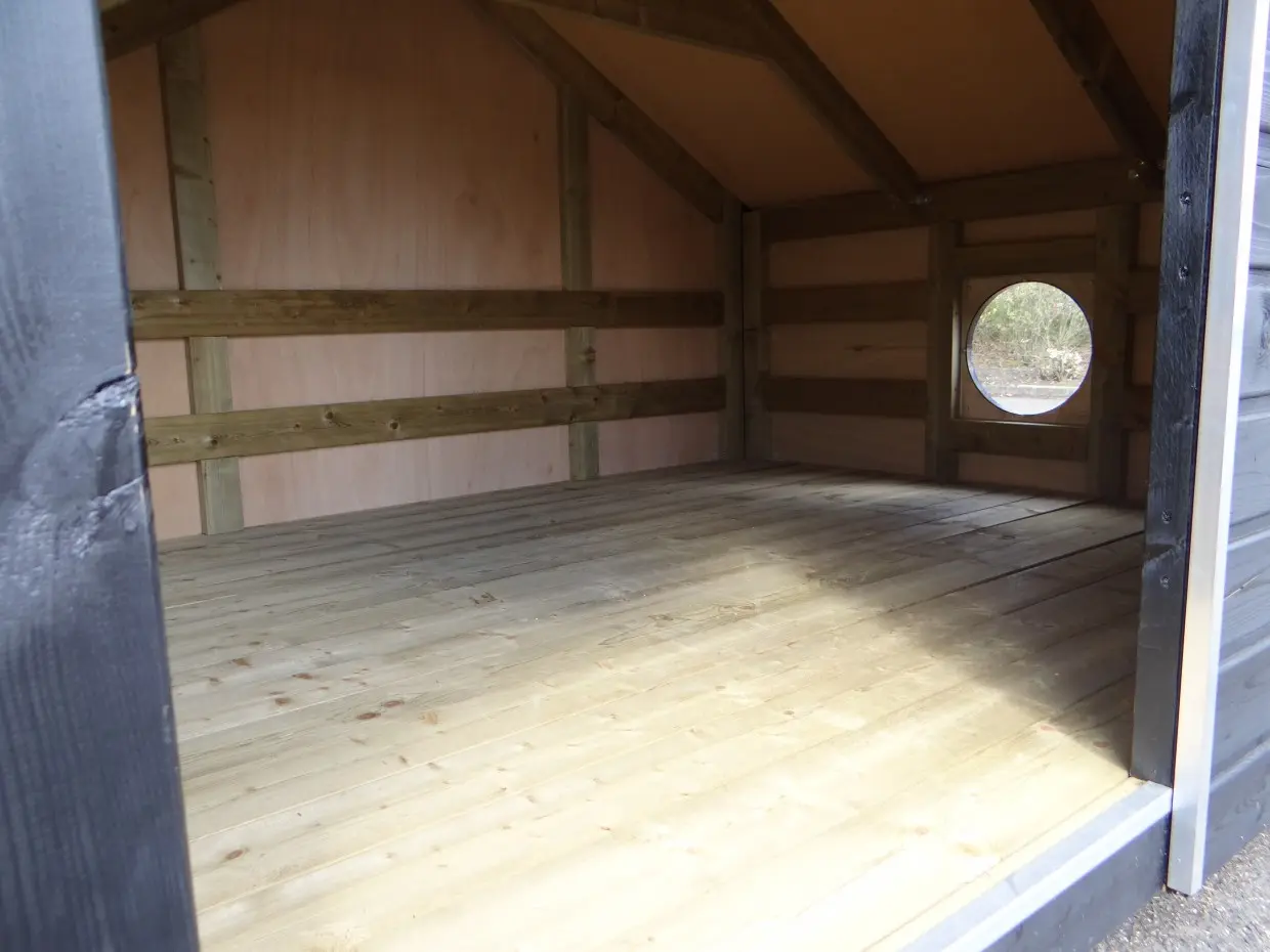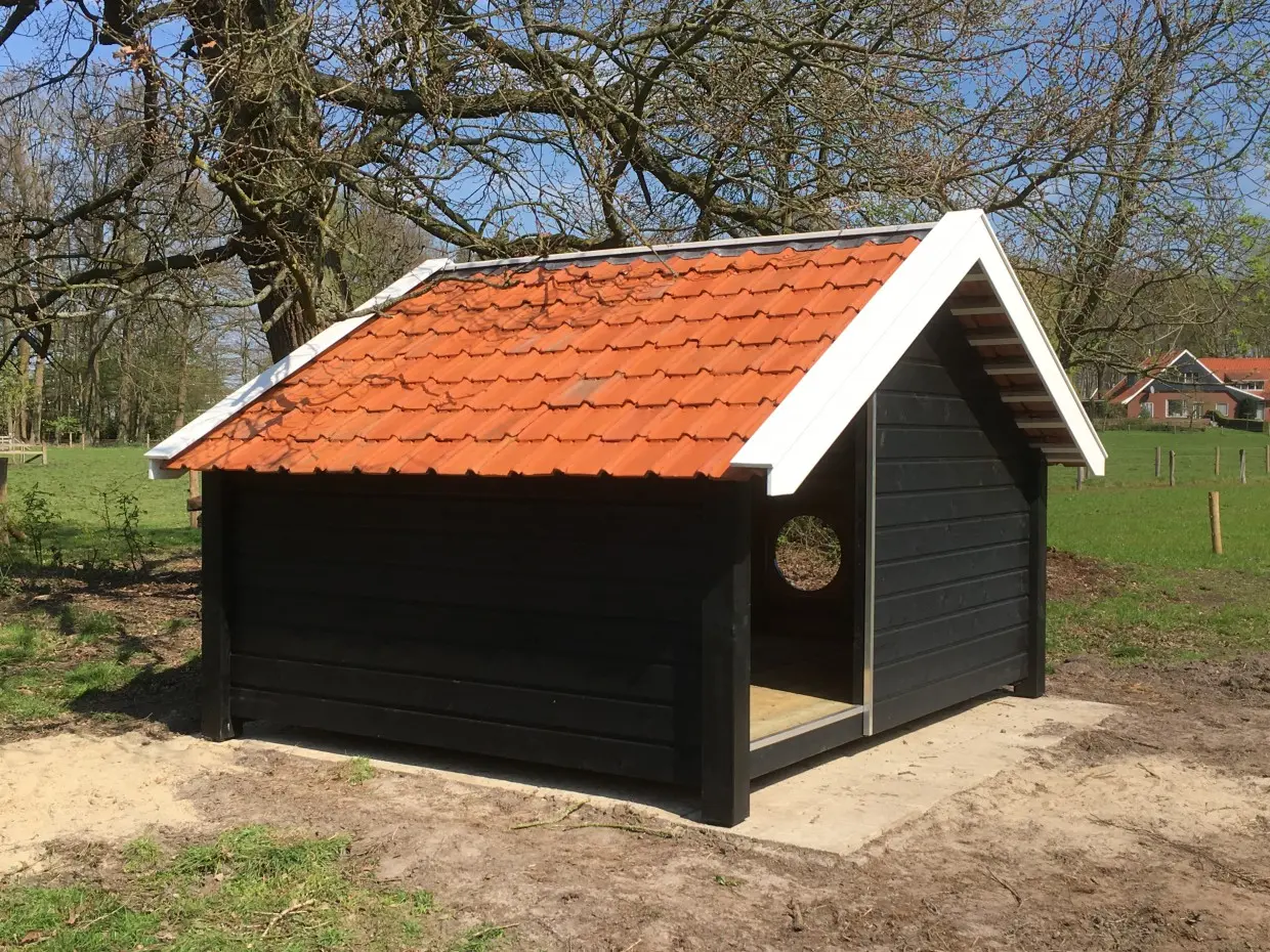 Het varkenshok wordt door ons ter plaatse gemonteerd en geplaatst. De ondergrond dient vlak te zijn en vrij van obstakels.