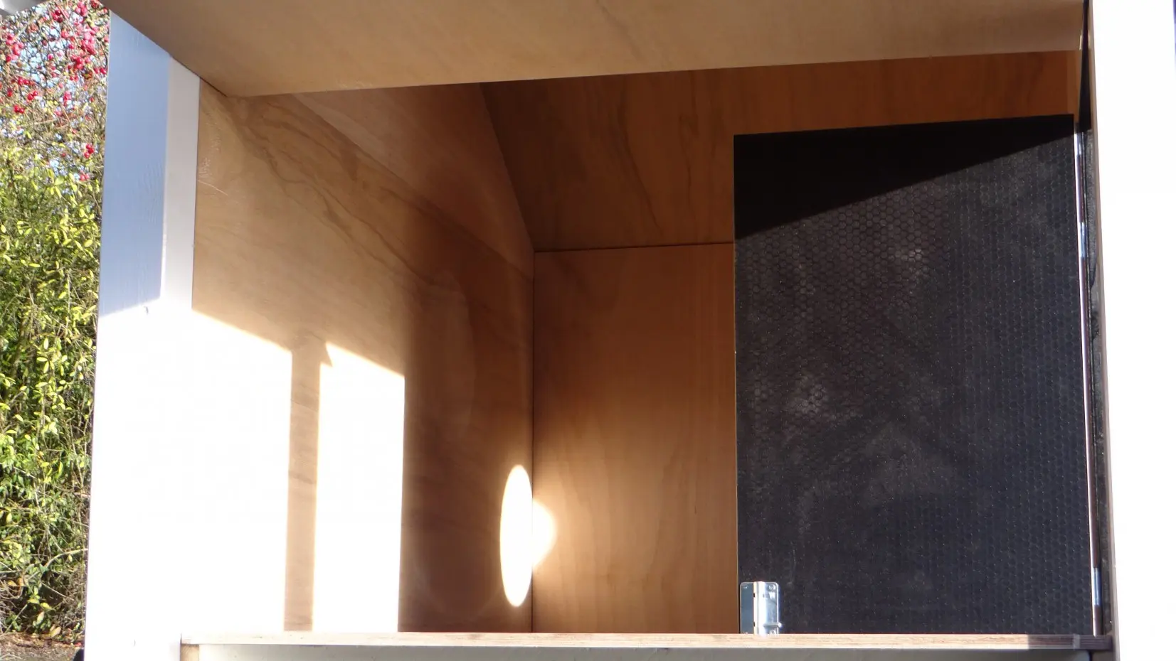 - De binnenkant van het nachthok is betimmerd met hardhout multiplex