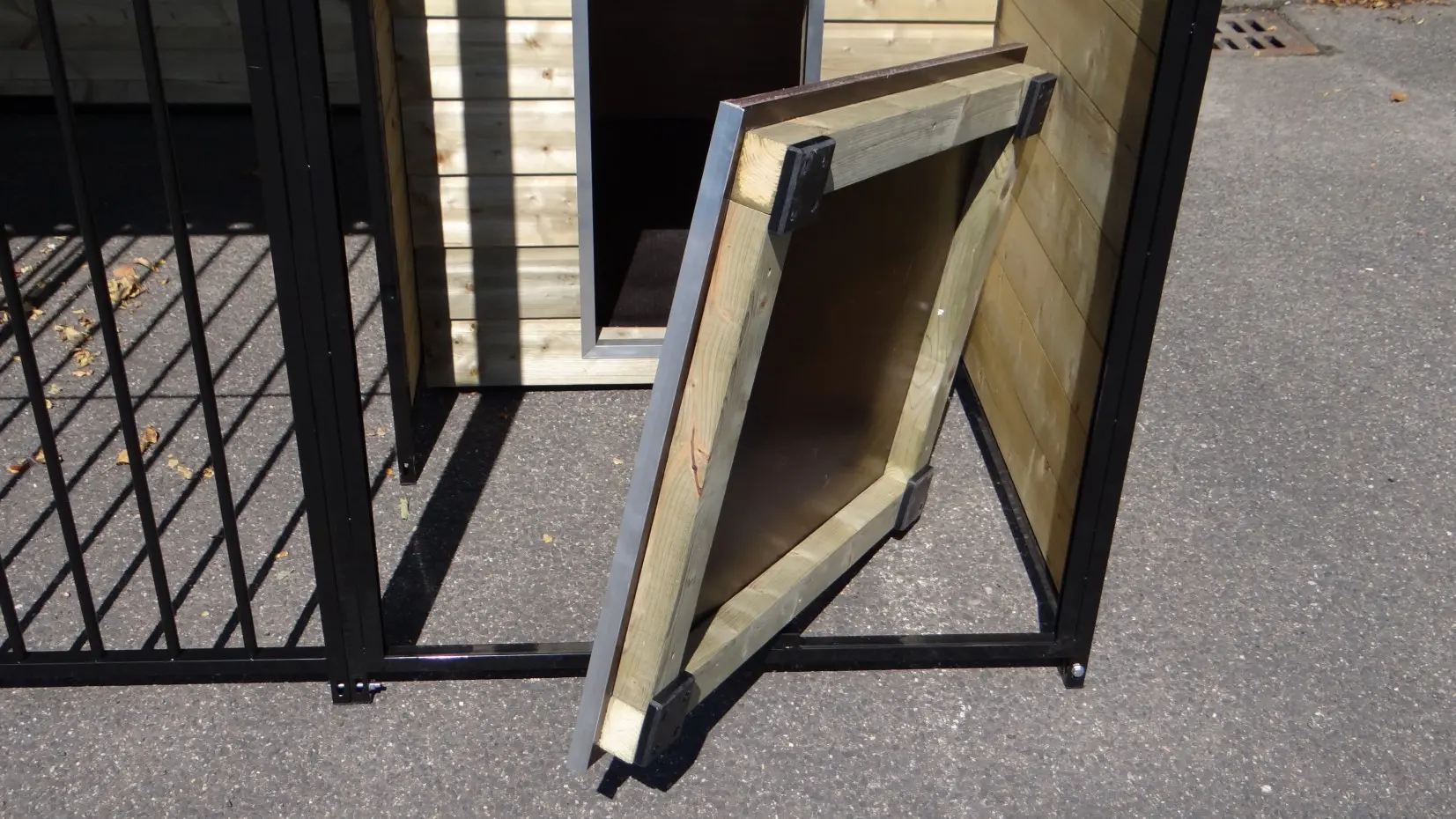 Vlonder van 94.5x77.5 cm past precies in een kennel waar het nachthok Easy in staat. Een goede aanvulling bij dit hok. Uw hond zal dit ligplekje erg waarderen. De vlonder is aan de korte zijde (77.5 cm) voorzien van een aluminium anti-bijt strip. Ook is de onderkant voorzien van kunststof voetjes.