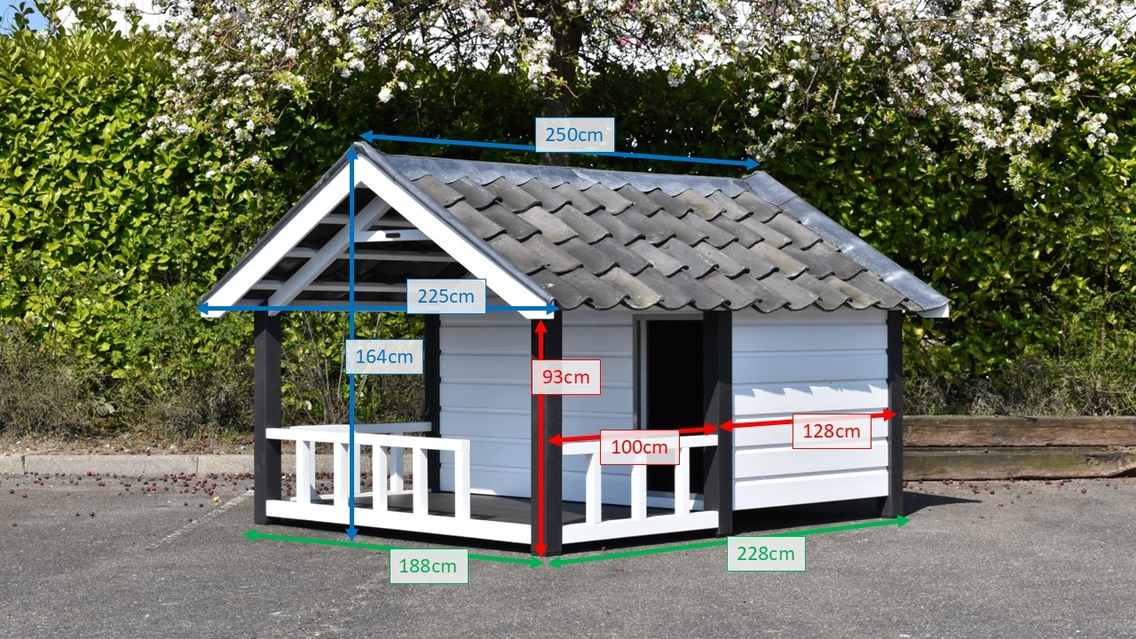 | Buitenwerkse afmetingen incl. dak (BxDxH) | 225x250x164cm |