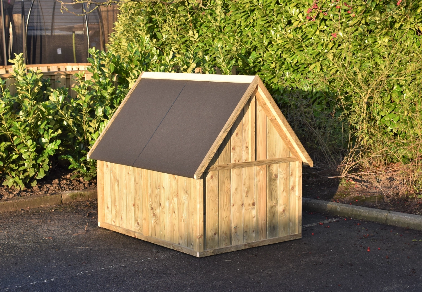 Hondenhok Barny met puntdak is een pracht hok met leuk stijlvol dak. Het hok is gemaakt van geïmpregneerd vuren hout en heeft een lange levensduur. Door de ruime opening kan er gemakkelijk een grote hond in. Het hok staat op kunststof voetjes en heeft een vloer van Underlayment 15 mm dik. Hiervoor in de plaats kunnen we ook betonplex 15 mm toepassen, dit geeft een wat langere levensduur. Optisch een plaatje voor uw tuin! Degelijk gebouwd met jarenlang plezier voor uw hond!