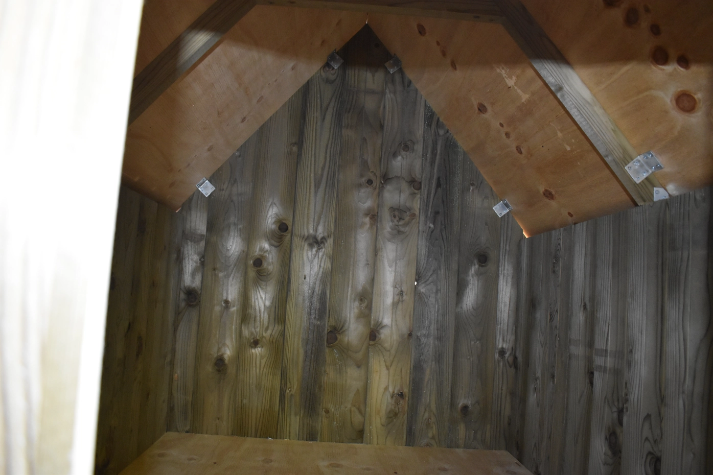 • Als de luchtvochtigheid buiten hoog is, wordt het ook vochtig in een hok. Om schimmelvorming te voorkomen kunt u de binnenkant van het hok beitsen.