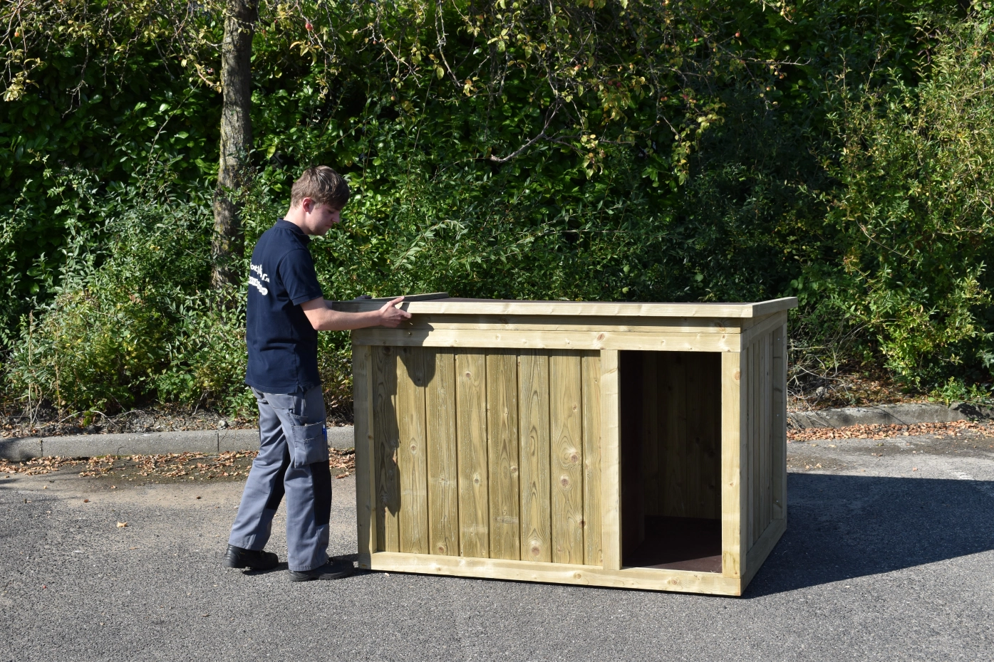 Hondenhok Block is gemaakt van geïmpregneerd vurenhout en voorzien van isolatie. Het is erg stevig gebouwd en dus goed geschikt voor grote honden zoals Boerboel, Duitse dog, Deense dog, Newfoundlander, Sint-bernard, Berner Sennenhond, Tibetaanse Mastiff. Wanden, vloer en dak zijn voorzien van 3 cm isolatiemateriaal.