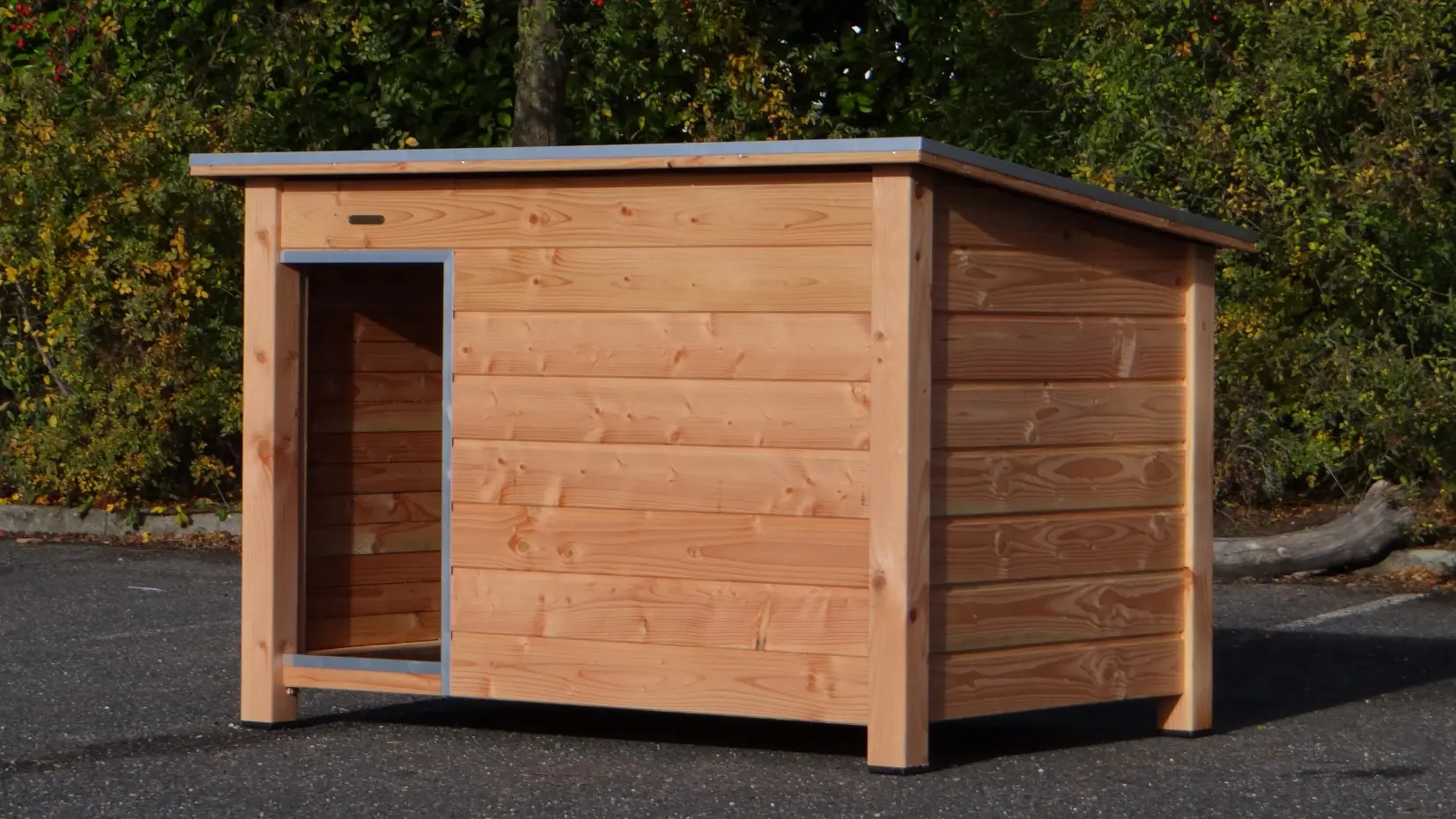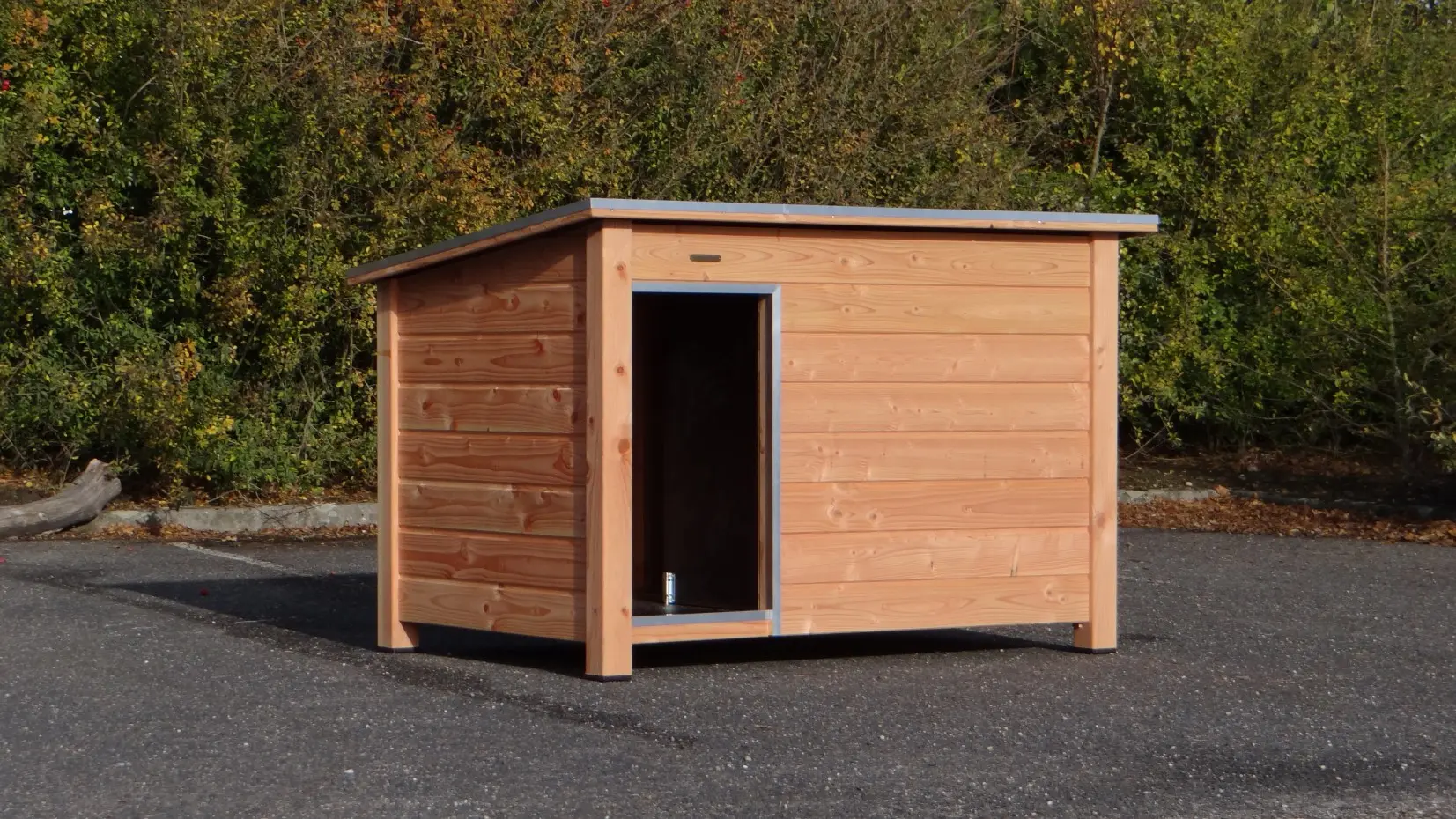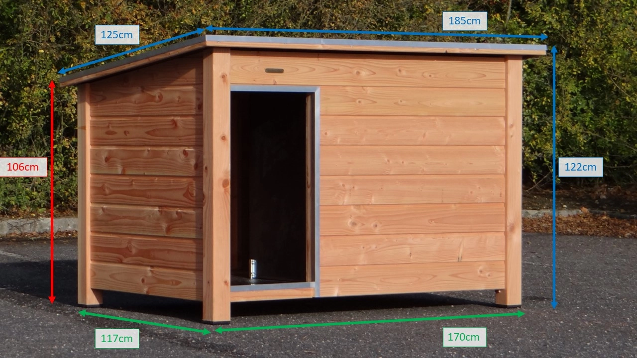 Groot hondenhok nodig? Met deze Loebas van douglashout, koopt u kwaliteit en gebruiksgemak. Dit hondenhok is geschikt voor grote honden als Duitse Dog, Leonberger, Berner Sennen en Sint-Bernhard. De ingang is afgewerkt met aluminium. In het hok zit een draaibaar tochtschot, zodat uw hond heerlijk uit de wind kan liggen. Het scharnierende dak is van betonplex met anti-slip (hexagrip) en afgezet met aluminium randen. Uw hond kan gewoon bovenop het hok liggen. De vloer is van betonplex met hexagrip. De Loebas is ook verkrijgbaar als geïsoleerd hondenhok.