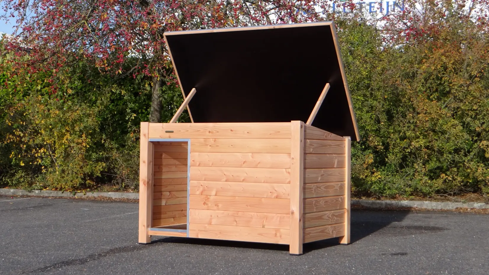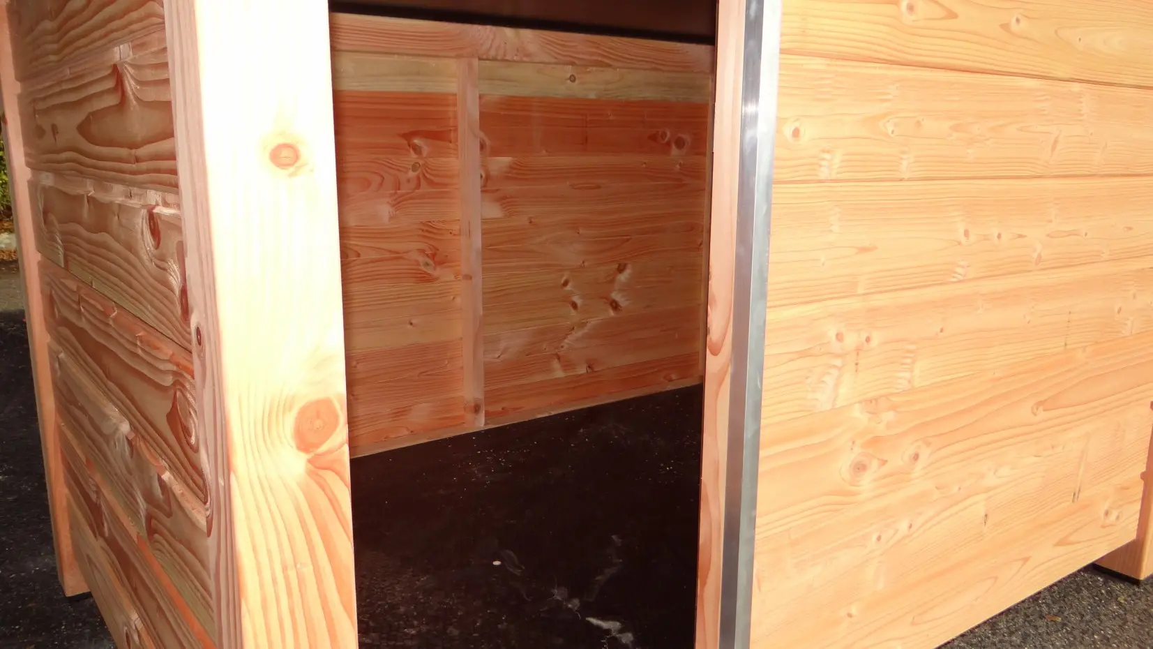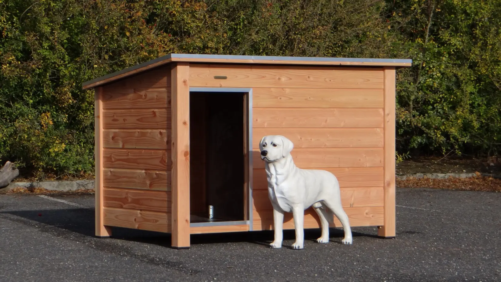 Groot hondenhok nodig? Met deze Loebas van douglashout, koopt u kwaliteit en gebruiksgemak. Dit hondenhok is geschikt voor grote honden als Duitse Dog, Leonberger, Berner Sennen en Sint-Bernhard. De ingang is afgewerkt met aluminium. In het hok zit een draaibaar tochtschot, zodat uw hond heerlijk uit de wind kan liggen. Het scharnierende dak is van betonplex met anti-slip (hexagrip) en afgezet met aluminium randen. Uw hond kan gewoon bovenop het hok liggen. De vloer is van betonplex met hexagrip. De Loebas is ook verkrijgbaar als geïsoleerd hondenhok.