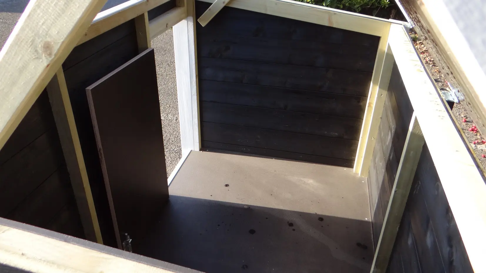 - Als de luchtvochtigheid buiten hoog is, wordt het ook vochtig in een hok. Om schimmelvorming te voorkomen kunt u de binnenkant van het hok beitsen.