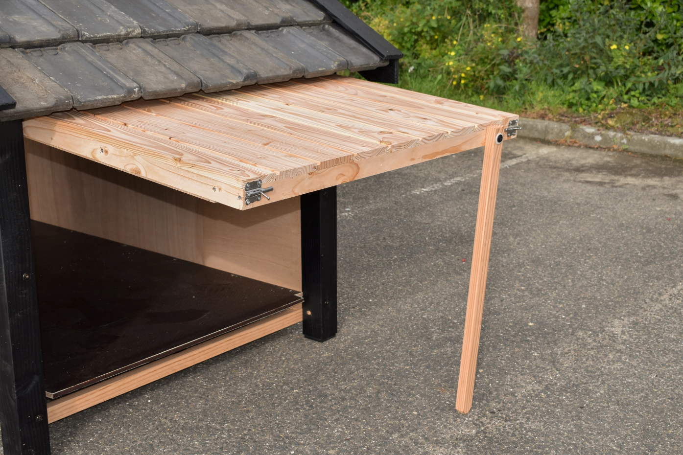 - Het hok is voorzien van een zijluik, waardoor het makkelijk schoon te maken is en het 's zomers ook opengezet kan worden als het erg warm is.