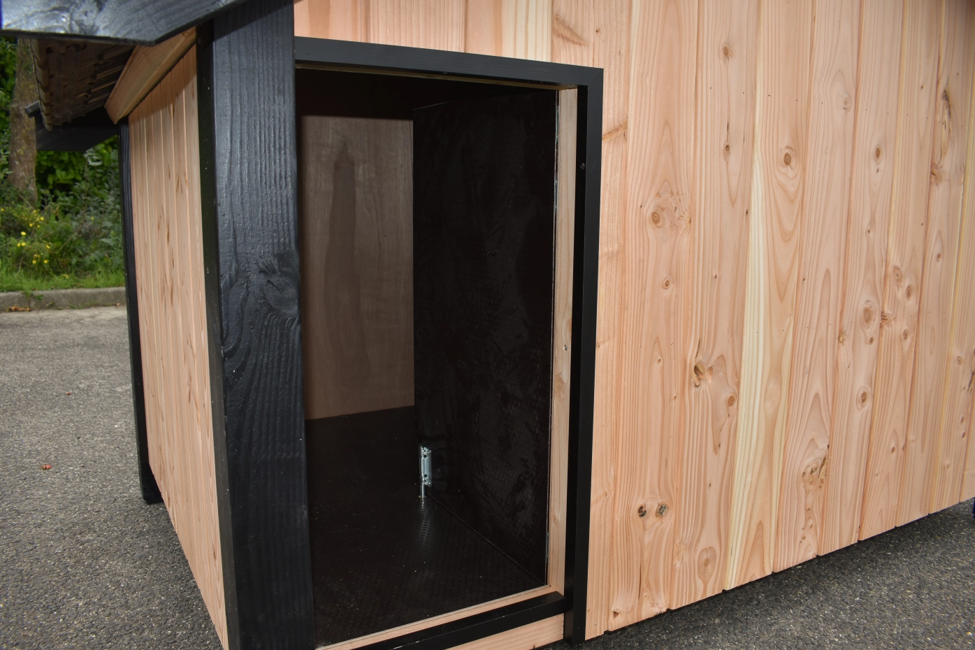Het hondenhok Turbo Douglas Zwart heeft zwarte palen en planken van duurzaam douglas hout. Het beschikt over een draaibaar tochtschot en een zijluik voor optimale ventilatie en gemakkelijke reiniging. Dit hondenhok is geschikt voor bijvoorbeeld de Berner Sennenhond, Duitse dog en de Boerboel.