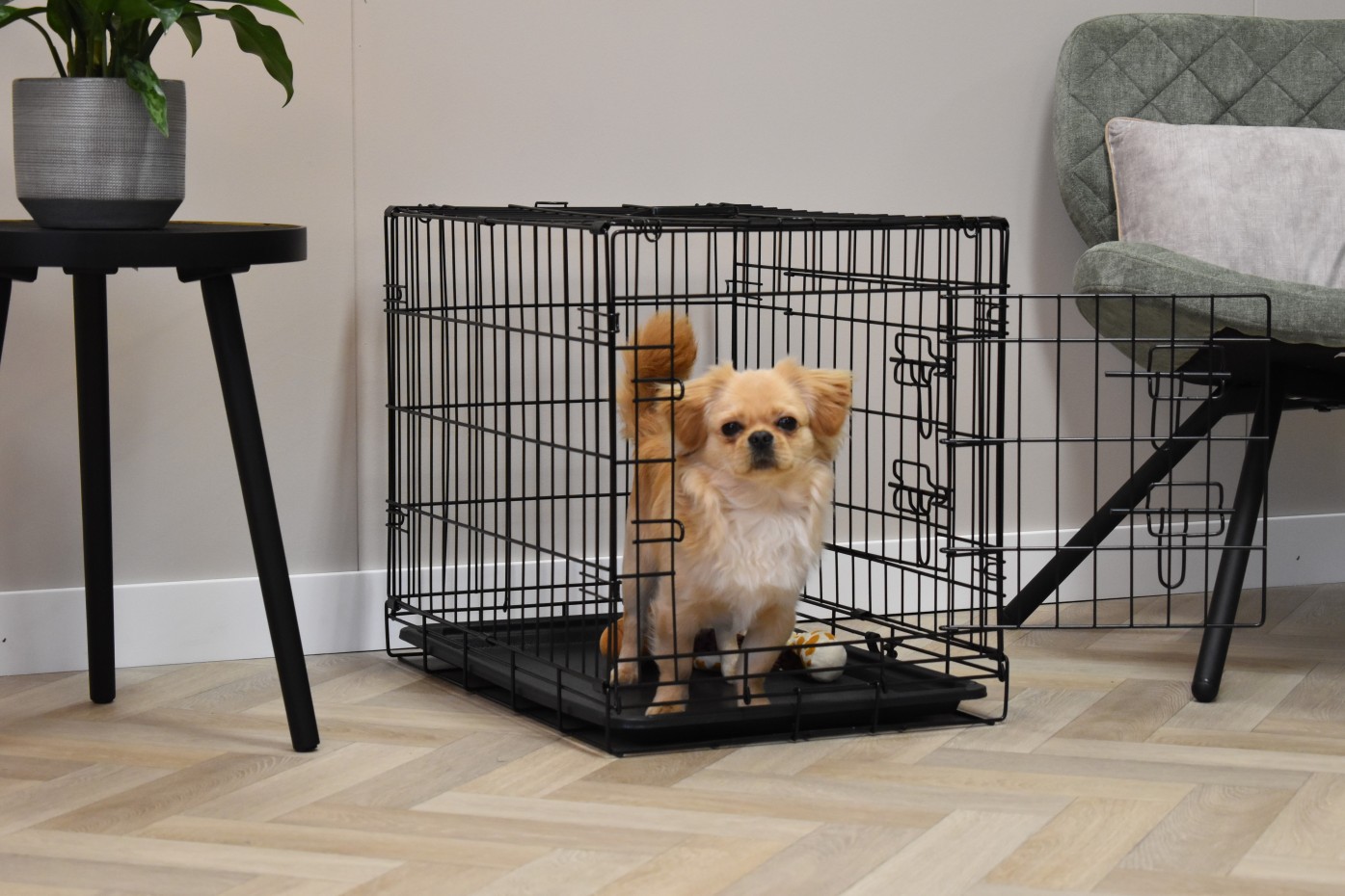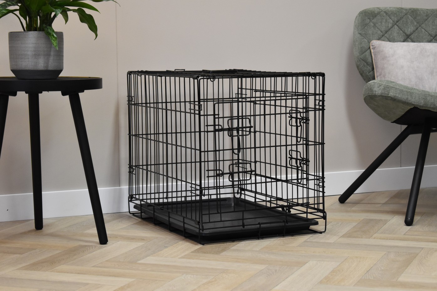 - Degelijke hondenbench met zwart gepoedercoate tralies