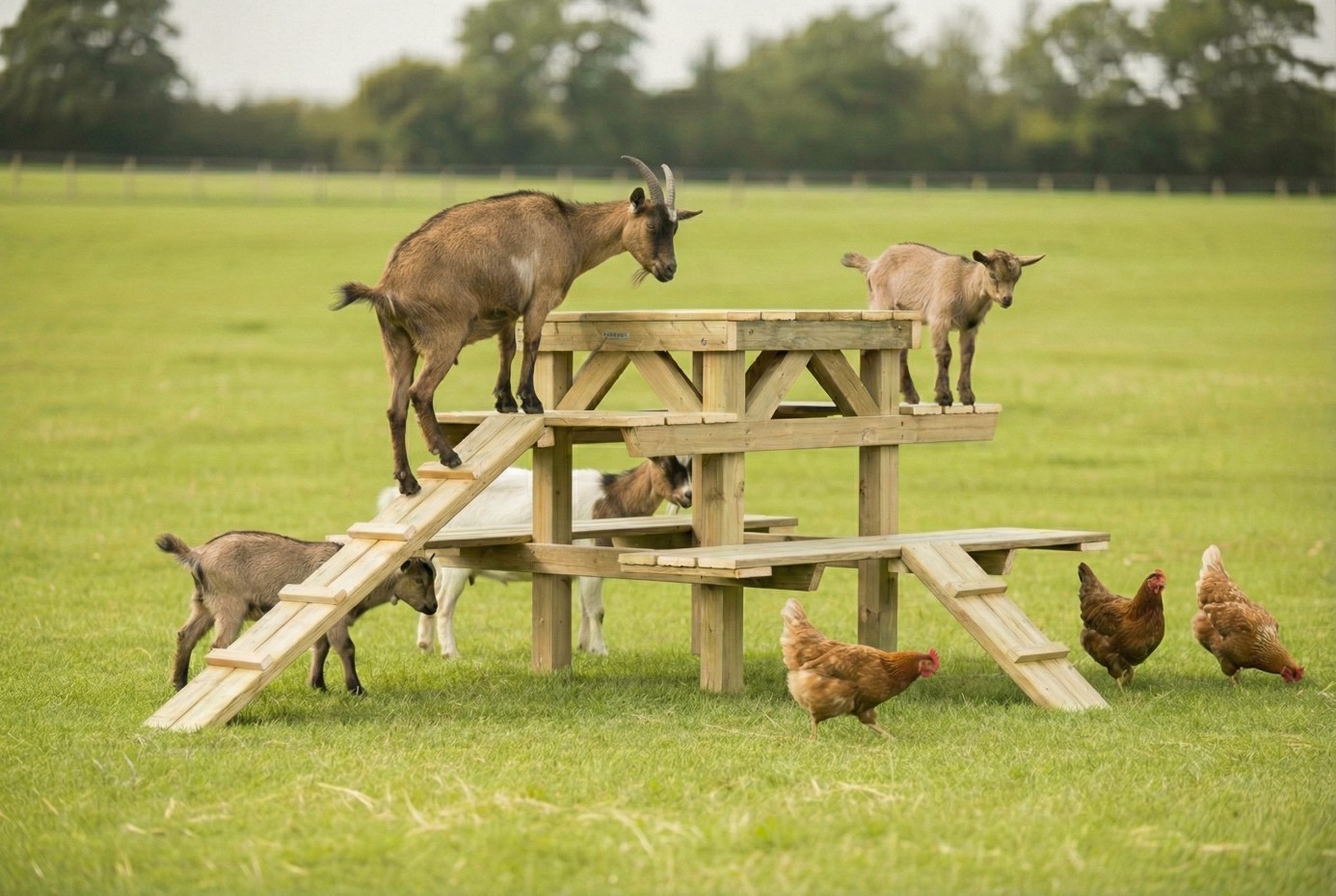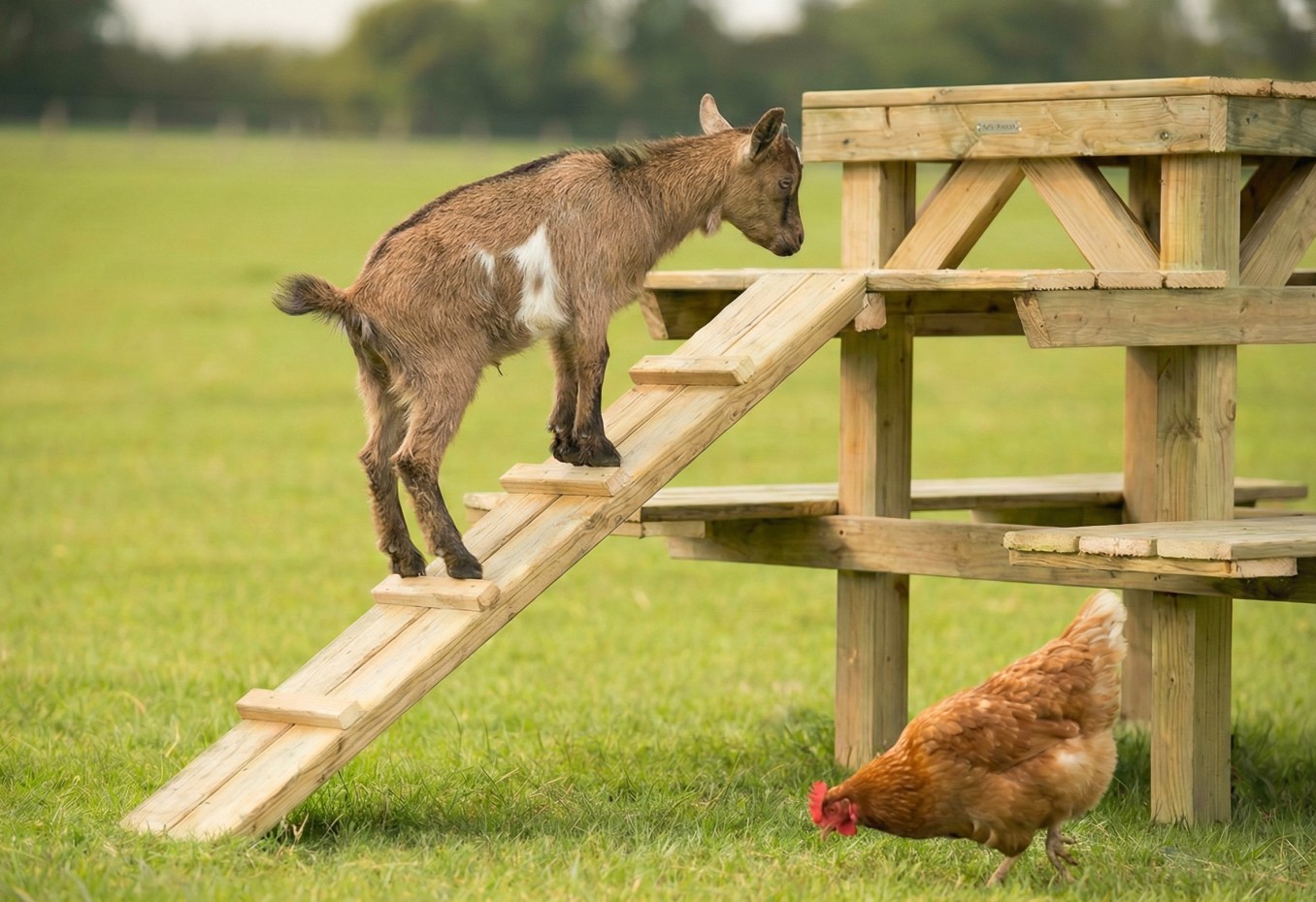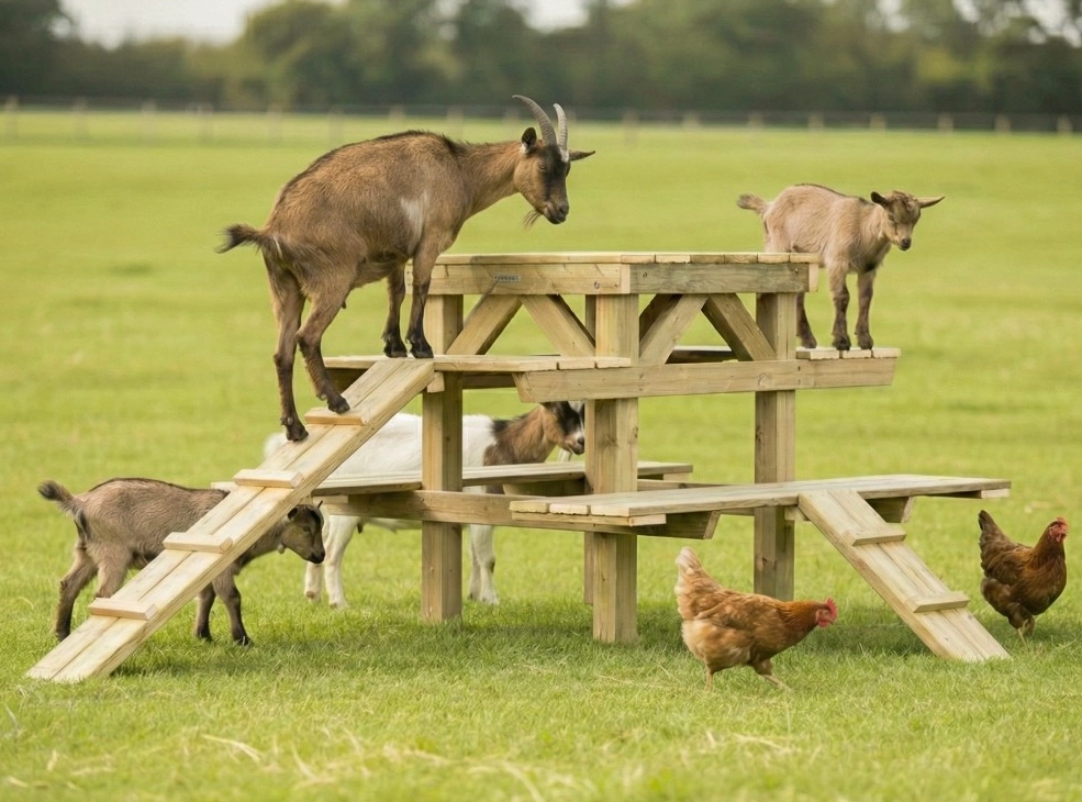 De geitenklimtoren M biedt geiten extra uitdaging en beweging in de wei. Geiten klimmen van nature graag en staan het liefst op hoogte om hun omgeving te overzien. Met vijf stevige plateaus en twee handige loopplanken kunnen ze springen, klimmen en lopen zoals ze dat van nature doen.