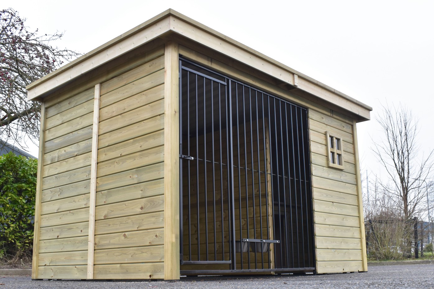 - De houten wanden zorgen voor beschutting tegen wind, neerslag en zon. Hierdoor ontstaat een beter klimaat in de kennel, het hele jaar door.