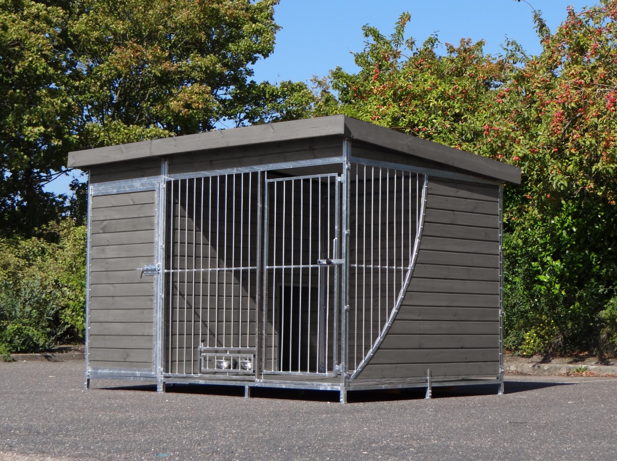 - De houten wanden zorgen voor beschutting tegen wind, neerslag en zon. Hierdoor ontstaat een beter klimaat in de kennel, het hele jaar door.