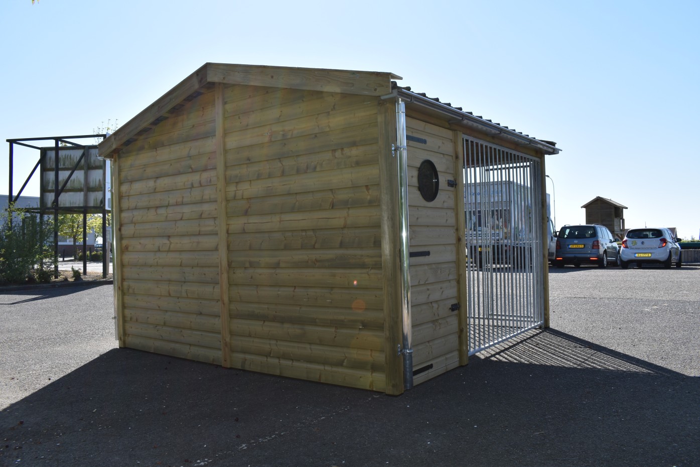 - De houten staanders van de kennel (88x88mm) zijn voorzien van kunststof voetjes
