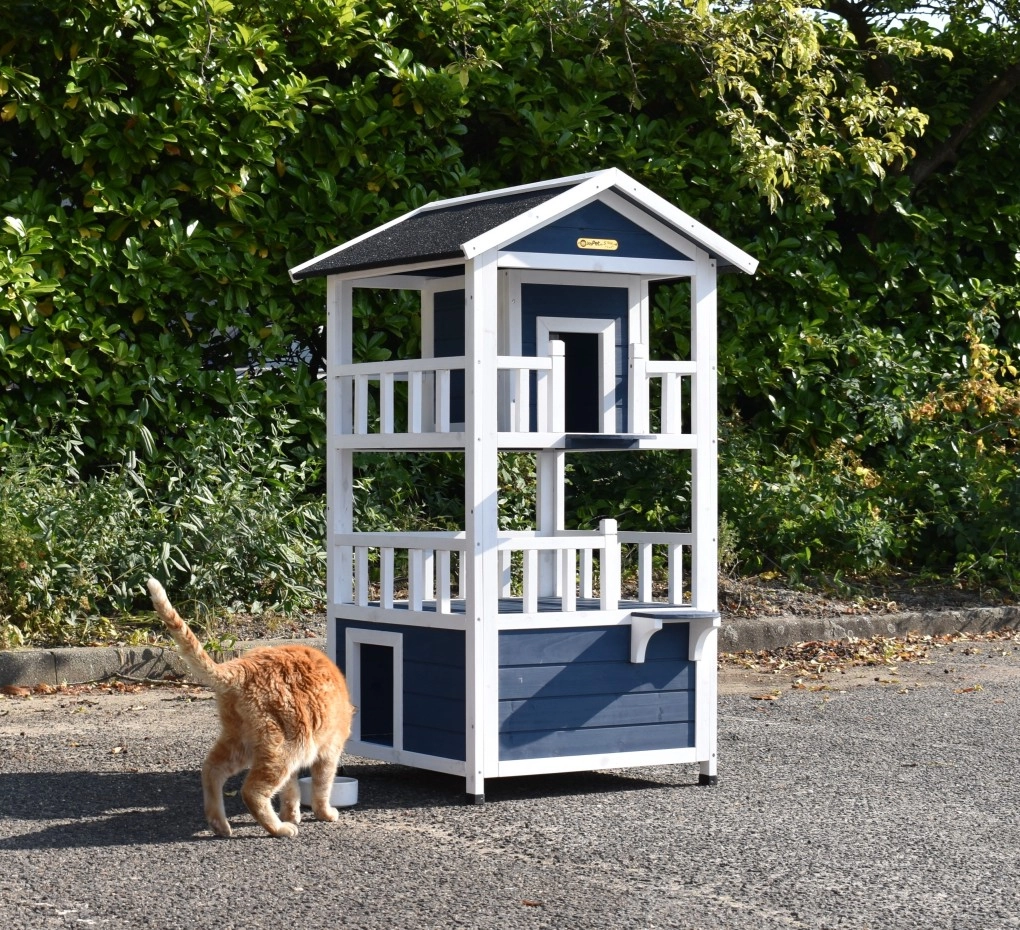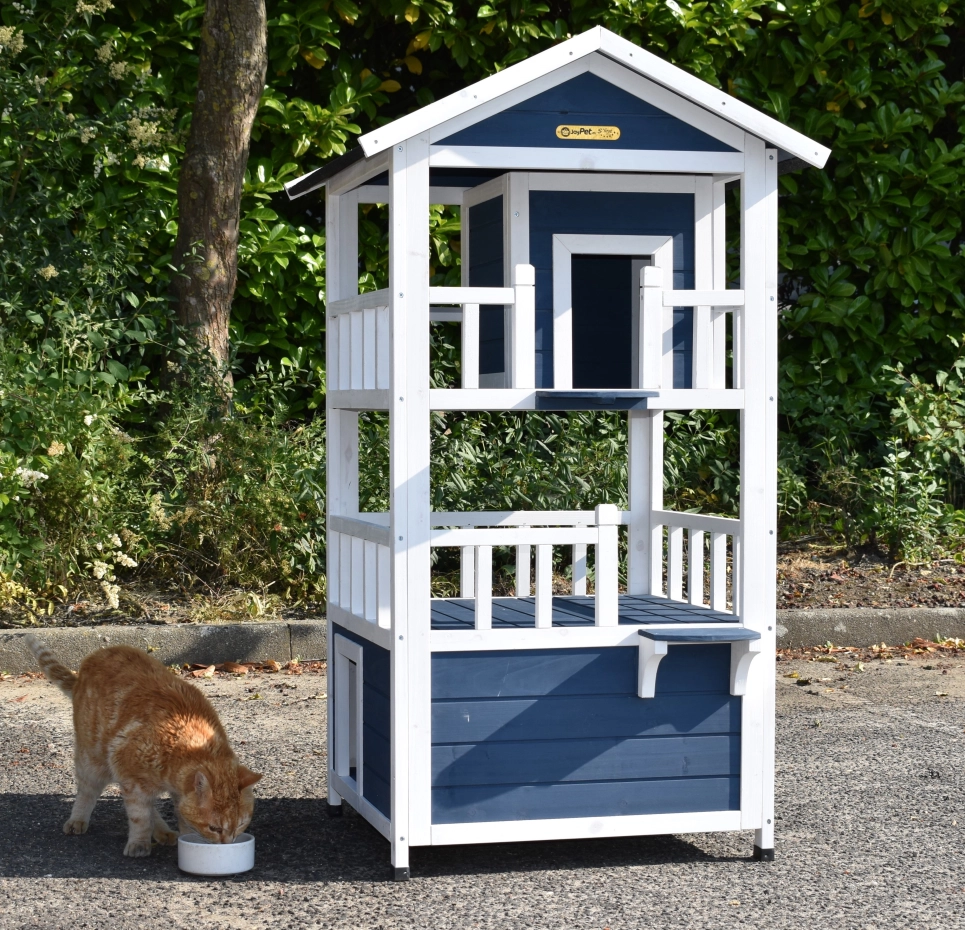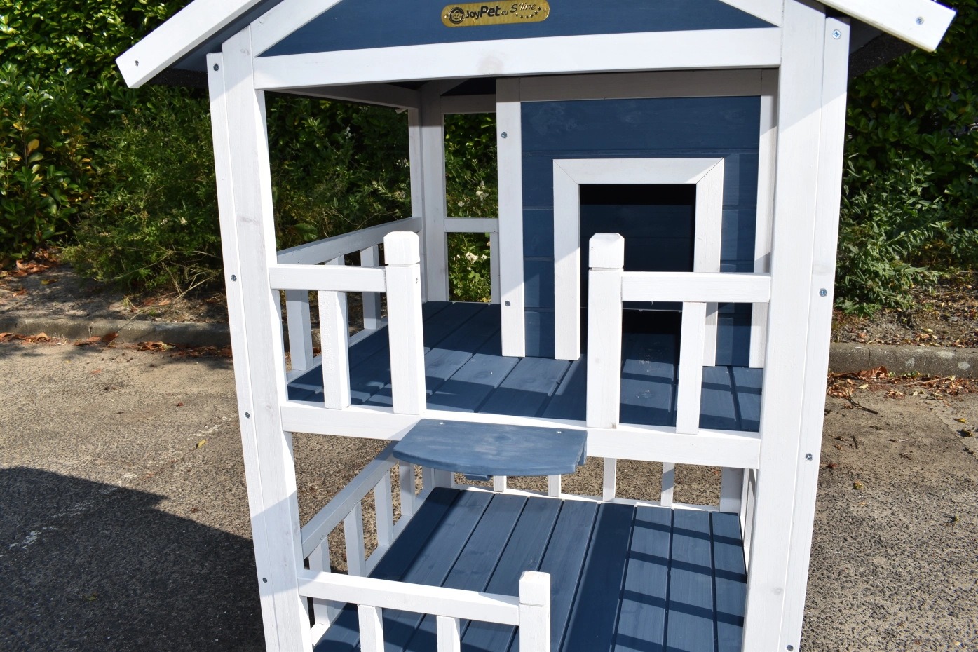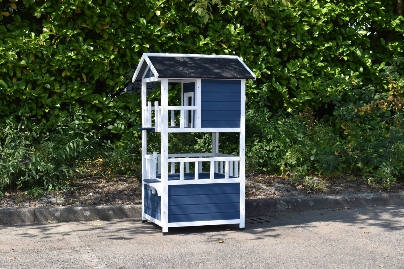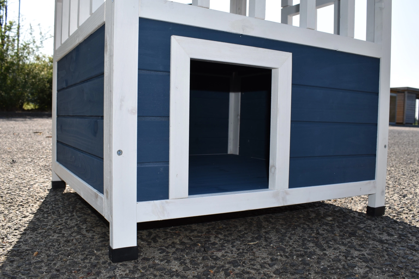 Kattenhuis Kitty is een leuk kattenhuis met 3 verdiepingen, waardoor het extra uitdaging biedt voor uw kat. Erg leuk om binnen of buiten te plaatsen! Het hok heeft leuke kleuren, namelijk blauw en wit. De verdiepingen zijn voorzien van een witte balustrade, wat het huisje een luxueus aanzien geeft!